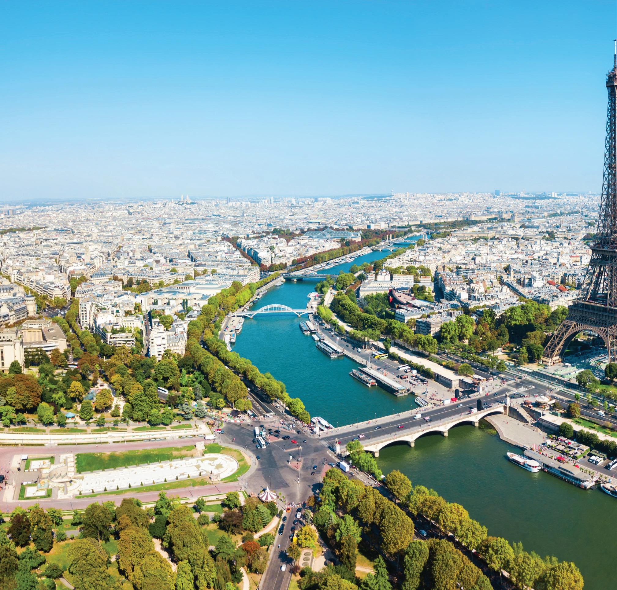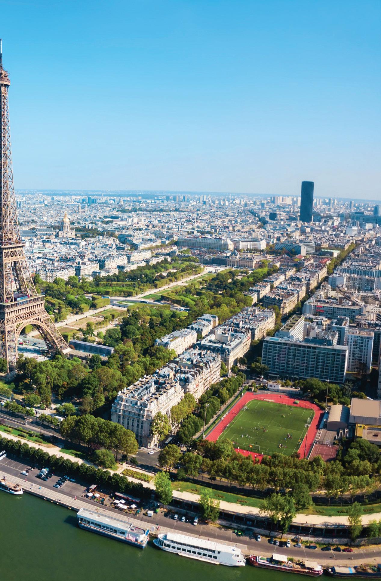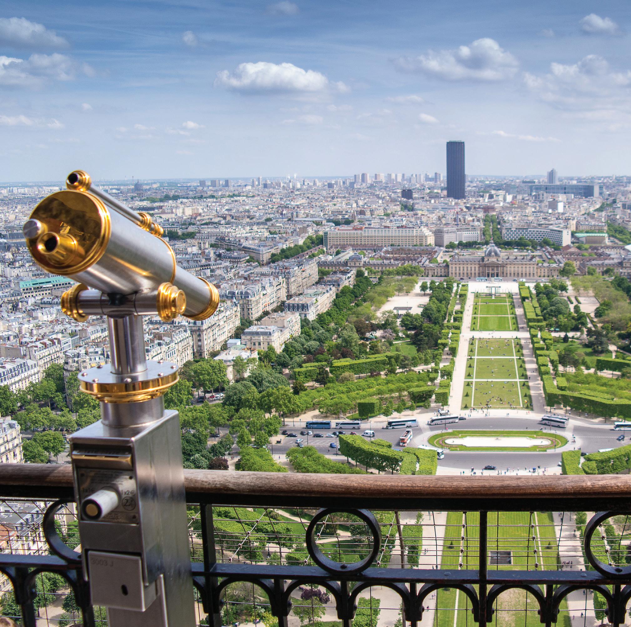 където може да хапнете на крак, има два ресторанта – Madame Brasserie (на първия етаж) и Jules Verne (на втория), както и шампанско бар (на третия).