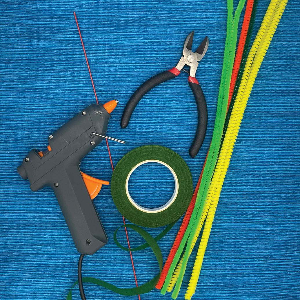 6. Вземете две зелени телчета. Прегънете всяко V-образно и