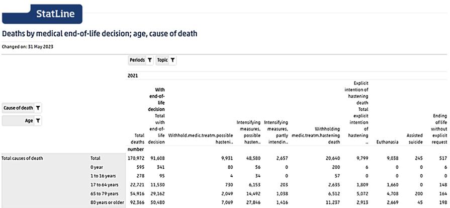 20. Statistics Netherlands. Deaths by medican end-of-life decision; age, cause of death. StatLine 24.5.2017.