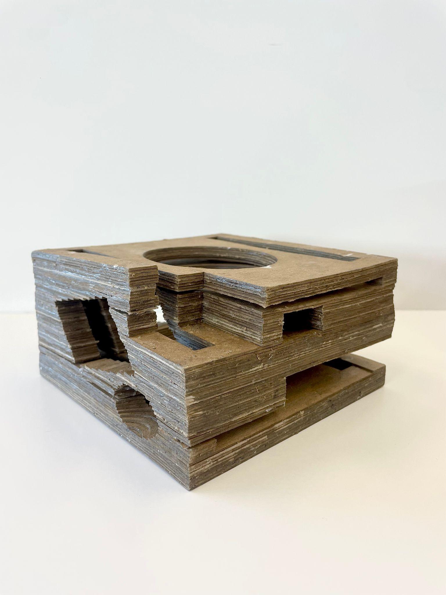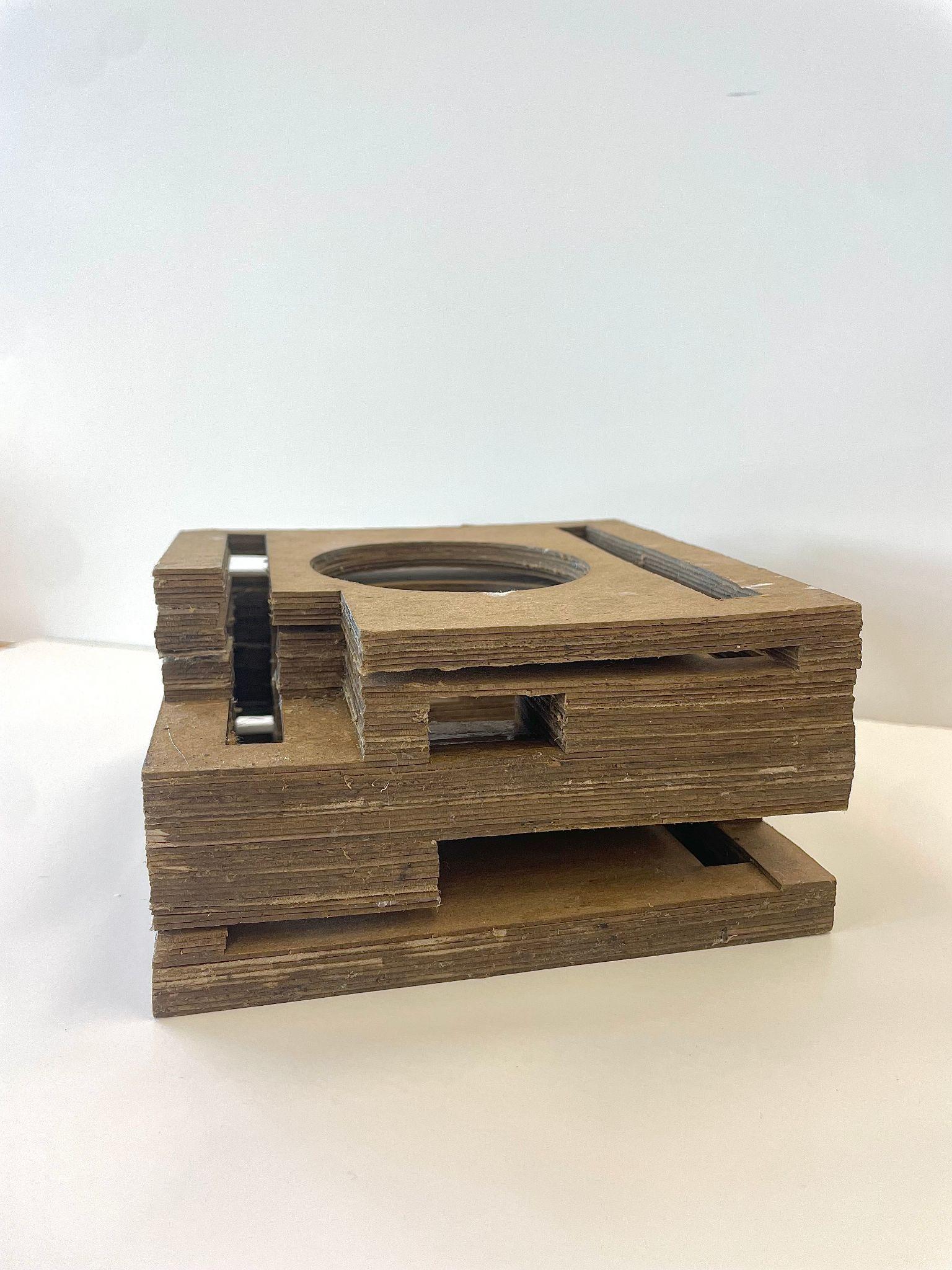 Using the contour operation on rino, this iteration is comprised of chipboard layers to construct cube.