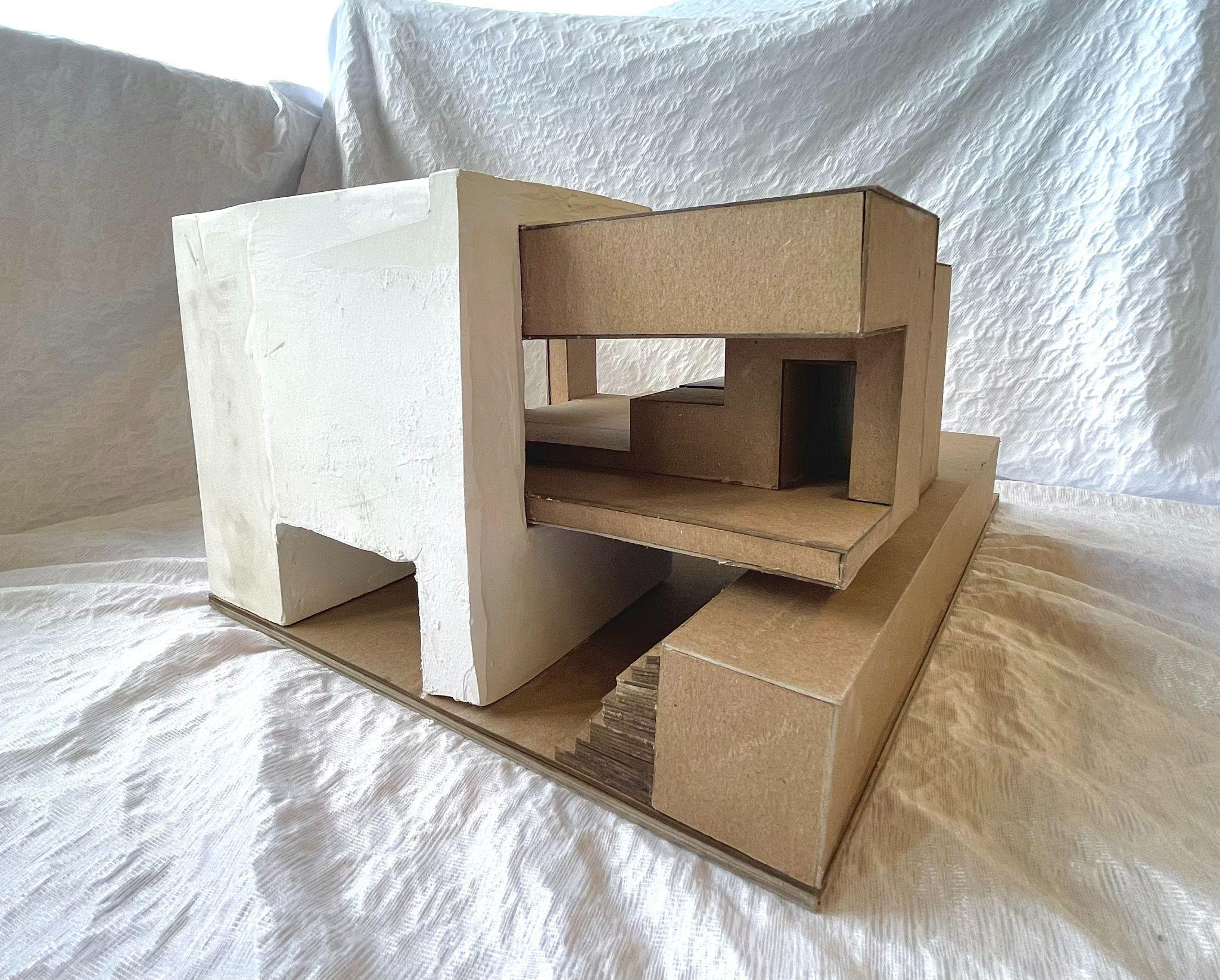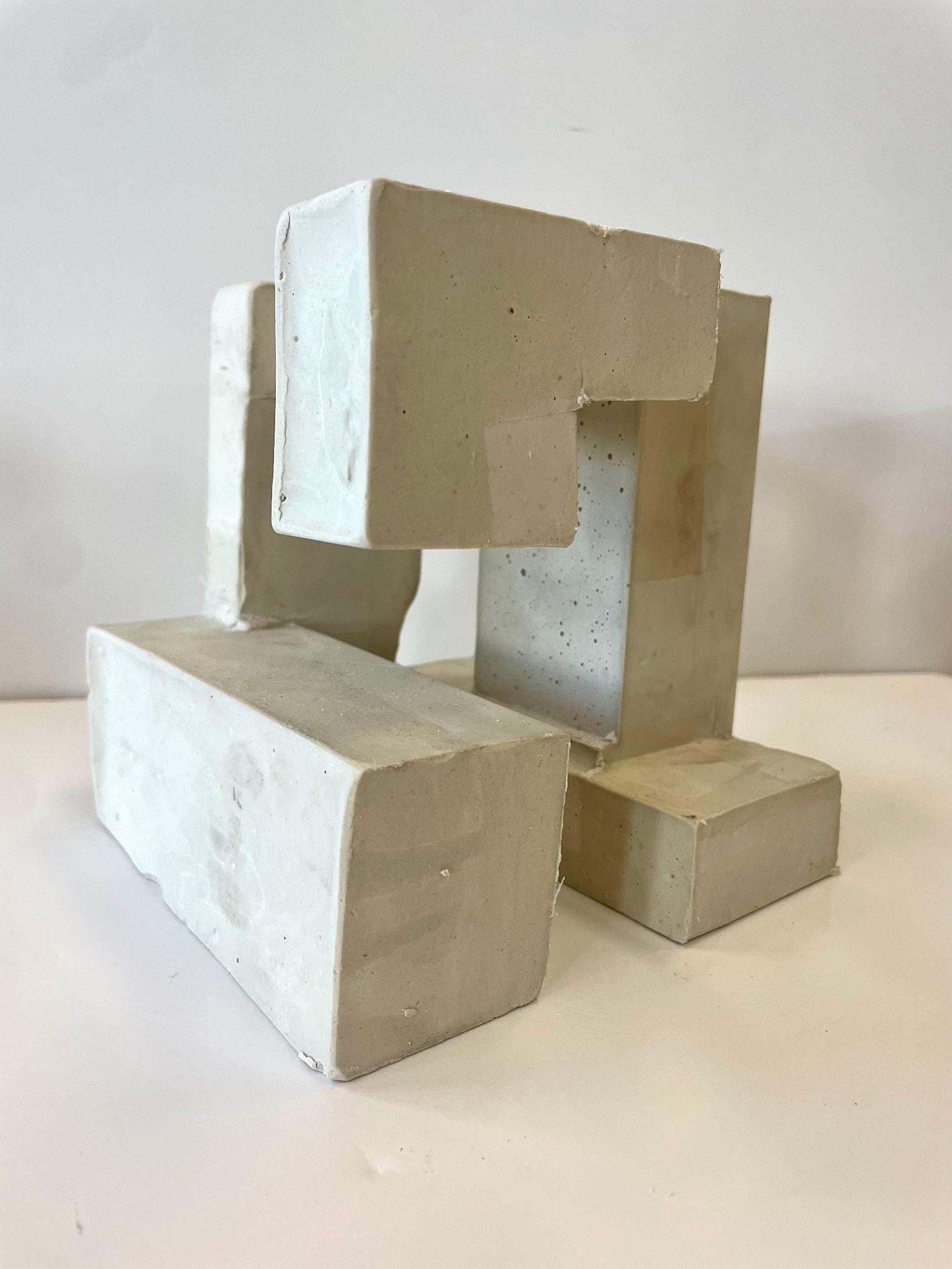 For our 4th cube iteration we were required to create positive and negative forms. My goal for this model was to test different structural elements. I found that using plaster was easier to work with and better fit my designs.