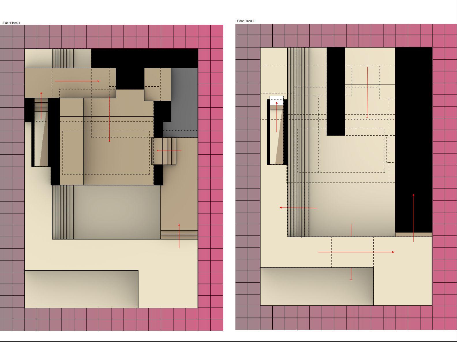 For the final site model, we were challenge to choose one of our cubes to alter and incorporate into a site that is occupiable. Using my 2nd cube, I decided to stretch out my original design and play with the idea of different forms. By extruding the interior portion, I was able to create a second form that was separate from my original cube. I wanted to emphasis the idea of circulation and create an interior that was free flowing yet still encompassed a well designed directional plan. The different entrances create a pavilion that has contrasting viewpoints. Each area within my sight allows for different social engagement.