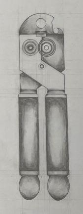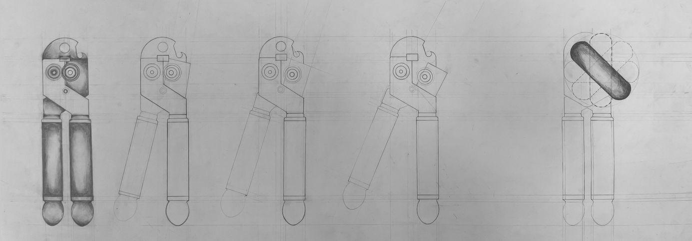 The artifact I chose to examine was a household can opener. I used this industrial tool because it is familiar to most, so much as its composition is often overlooked. I studied it’s parts in terms of how movement affects the relationship between the different parts.