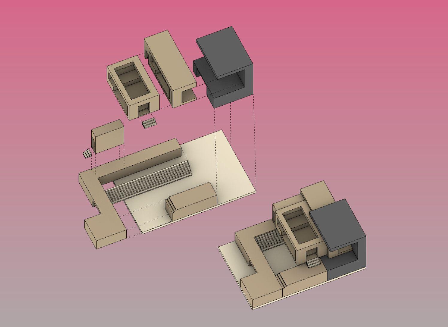 Didactic development of orthographic projection drawings into imaginative 3D constructs. Introducing abstract assemblies and tectonics as a path for formal and spatial development.