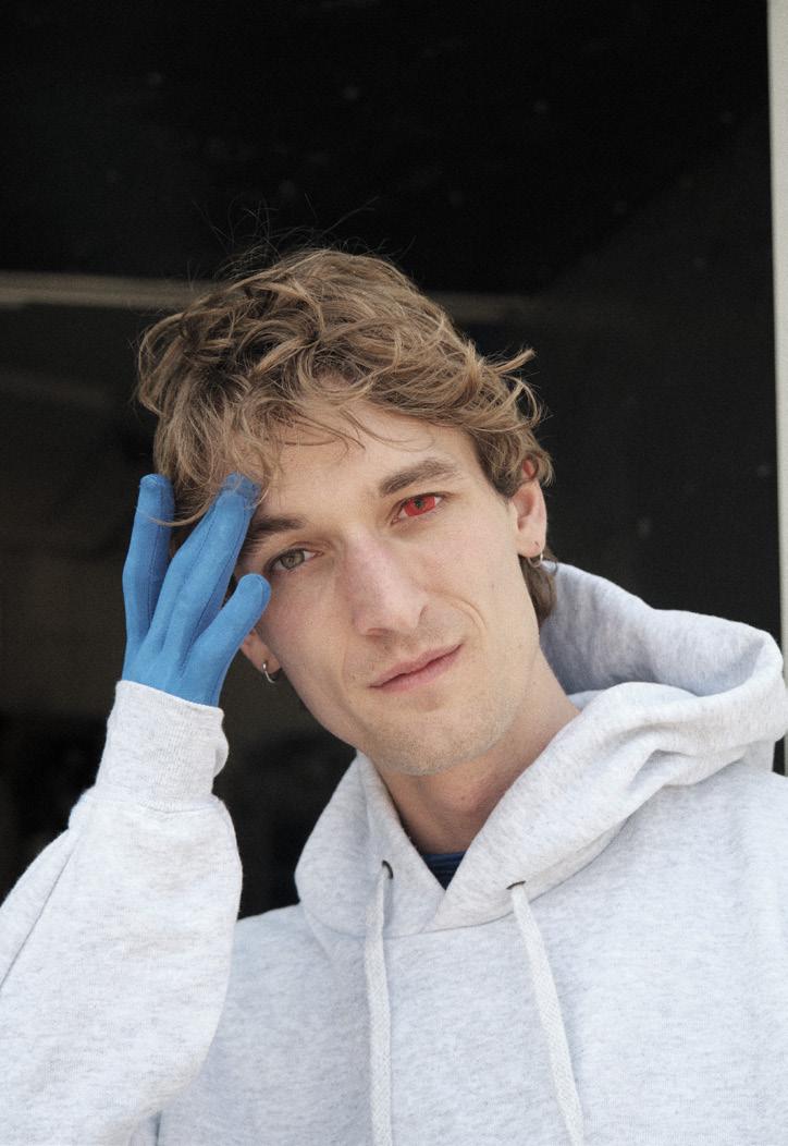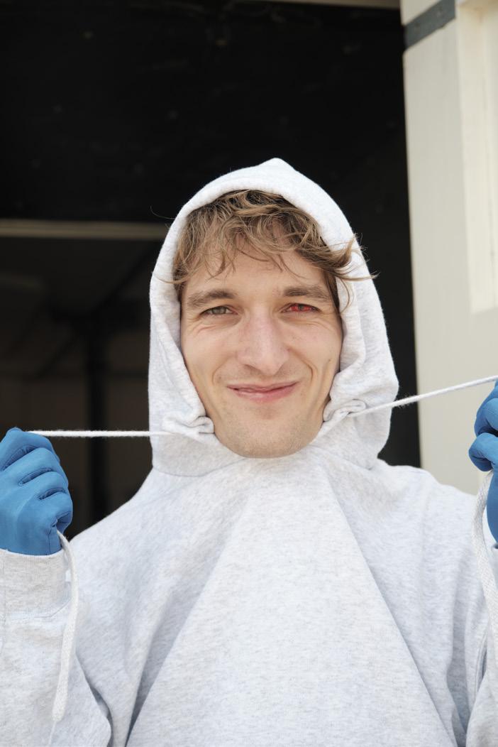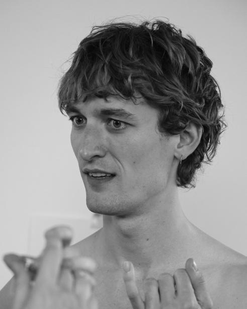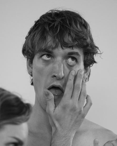 Perfomance kunstner, Filip Vest, der bliver intrueret i at tage kontaktlinser i under kostume prøverne til hans nye performance.