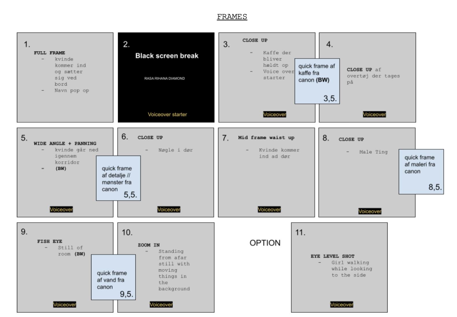 VIDEO 17 PRODUCTION PLAN FRAME PLAN VIDEO STILLS 18 19