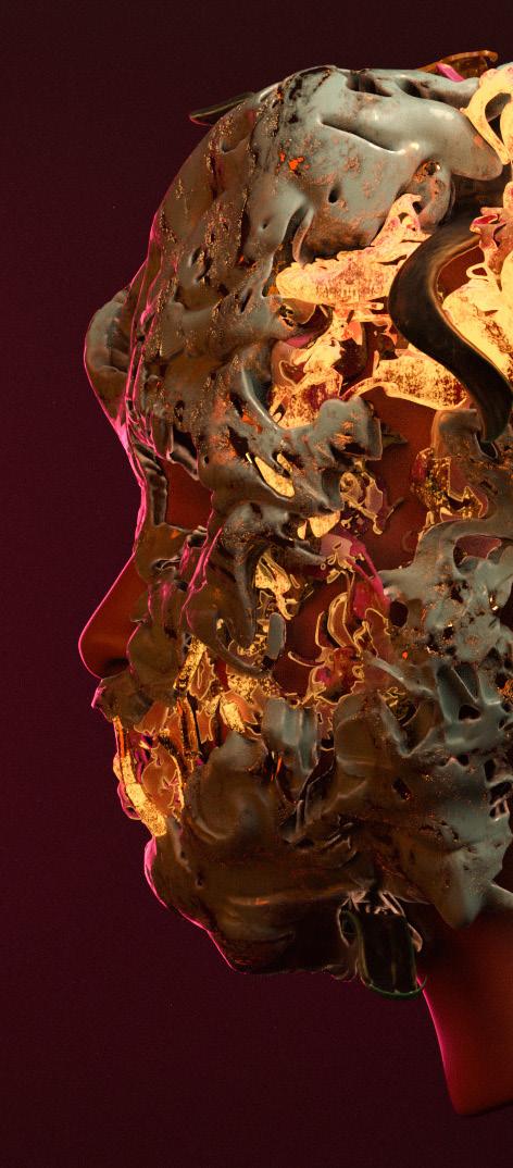 We stretch a smile across our face to restrain inner traumas, conflict, and bubbling pain. This smile serves as a means of censorship, where the succession of teeth present as cell bars constraining the volatile truths that are deemed unsavory by societal standards. This artificial mask stands as a hardened wall, resolute to the influences of the world. But no fortress is perpetually impenetrable and absolute. This mask staves back the violent eruption of the these constraints and a subsequent oozing of the dark matter that lies behind the walls. As the grin comes across the face you begin to see the mask tear open, the bars come free, and the fiery expression of individual identity is released. The tear symbolizes freedom, but not without its own troubles. Breaking the structure of the mask till it fails leaving us naked to the world.