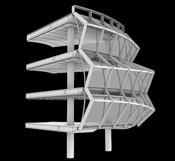 Similar to the splicing and parsing of genetic code, the building exists as a physical manifestation of spliced form and rigid skeletal lattice structures that imprint vertical contours on the exterior of the building.