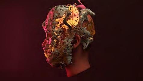 We stretch a smile across our face to restrain inner traumas, conflict, and bubbling pain. This smile serves as a means of censorship, where the succession of teeth present as cell bars constraining the volatile truths that are deemed unsavory by societal standards. This artificial mask stands as a hardened wall, resolute to the influences of the world. But no fortress is perpetually impenetrable and absolute. This mask staves back the violent eruption of the these constraints and a subsequent oozing of the dark matter that lies behind the walls. As the grin comes across the face you begin to see the mask tear open, the bars come free, and the fiery expression of individual identity is released. The tear symbolizes freedom, but not without its own troubles. Breaking the structure of the mask till it fails leaving us naked to the world.