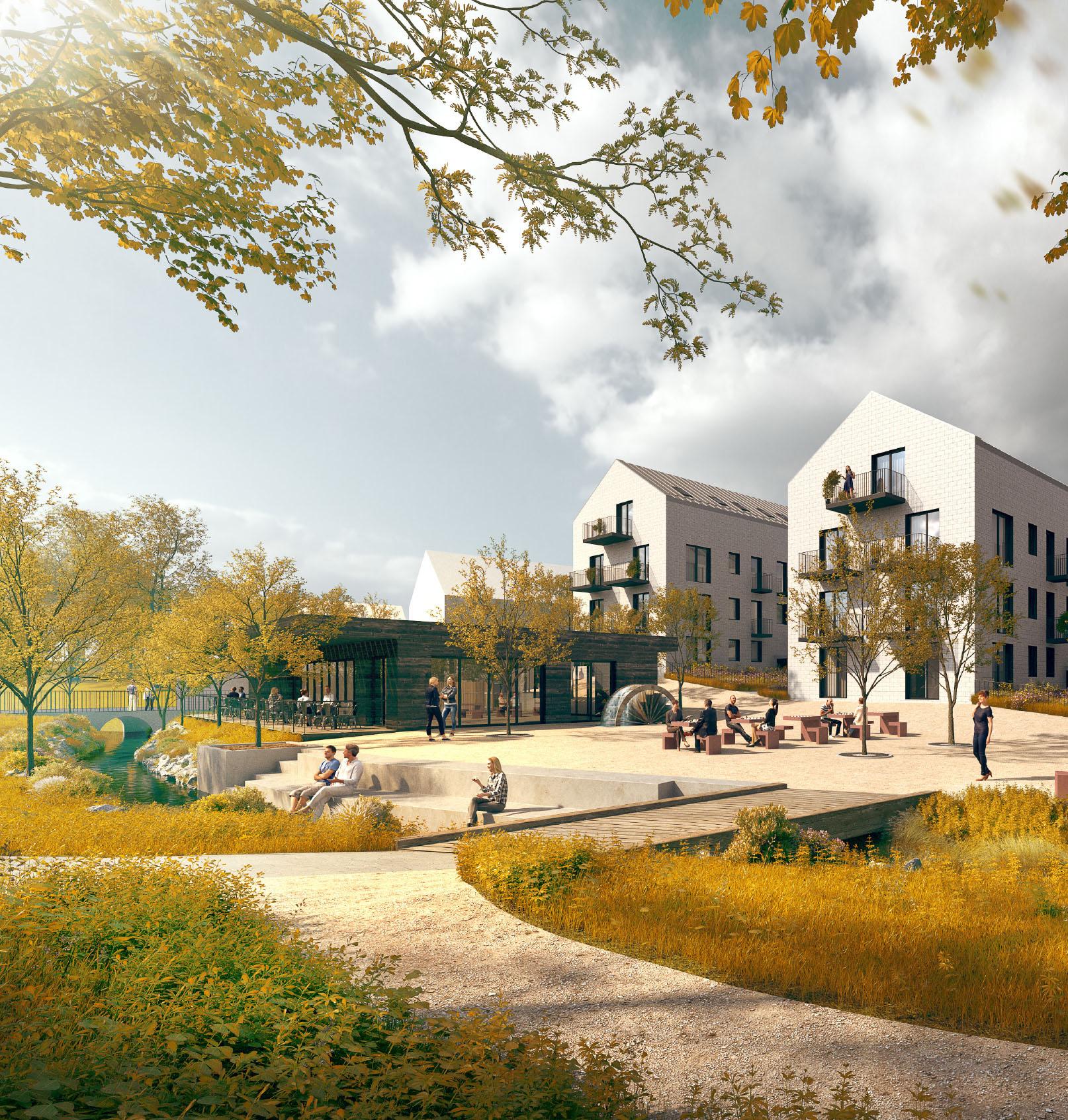 OBJEKTY BYDLENÍ A, B, C OBJEKT OBČANSKÉ VYBAVENOSTI A PEČOVATELSKÉ SLUŽBY PARKING V ULICI MLÝNSKÁ AUTOBUSOVÁ ZASTÁVKA LÁVKA PŘES ŘÍČANSKÝ POTOK
