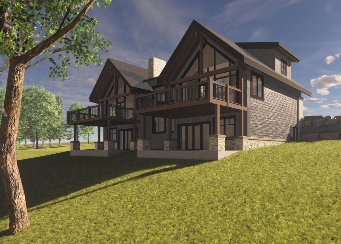 62.30 62.85 62.30 9'-1" 1'-0 3/4" 8'-0 5/8" 1'-1 1/8" 12'-2 1/8" 21'-3 7/8" north (front) elevation 1/4" = 1'-0" WALL PLATE LOWER FLOOR SLAB = 59.91m MAIN FLOOR SHTHG. = 63.00m WALL PLATE ROOF PEAK = 69.5m property line 12 2.5 EXISTING GRADE AT PROPERTY LINE EXISTING GRADE PROPOSED GRADE A 7'-4" UPPER FLOOR SHTHG. = 65.79m T/O WALL PLATE T/O LOWER FLOOR SLAB = 59.91m T/O MAIN FLOOR SHTHG. = 63.00m T/O WALL PLATE T/O ROOF PEAK = 69.5m T/O UPPER FLOOR SHTHG. = 65.79m 3' 8.25 12 1 1 2 2 3 3 4'-6 15/16" 1 1 10 17 6 8 2 1 8 16 12 5 15 4 4 exterior finishes #area material finish 1roof asphalt shingles IKO charcoal grey 2fascia 10" cedar dark espresso brown 3soffit vented aluminium soffit dark espresso brown 4eaves troughs extruded aluminum galvanized 5walls shingles green 6walls 2 vertical siding green 7walls 3 horizontal siding dark espresso brown 8walls 4 stone natural ledge stone 9heavy timbers douglas fir dark espresso brown 10doors- front custom wood black 11doors- french aluminum/ vinyl black 12windows aluminum/ vinyl black 13wood railings cedar LifeTime wood treatment dark espresso brown 14deck dura-dek membrane legacy driftwood 15bellyband 2"x12" clear cedar board green 16trim cedar board black 17shutters cedar dark espresso brown 817 main street canmore alberta t1w info@russellandrussell.ca 403 678 3003 www.russellandrussell.ca and DRAWING NUMBER: DRAWN: DESIGNED: CHECKED: PROJECT: Copyright reserved. These and designs are at all property of the designer and be used without permission. to be used only for the project Written consent is required designer before any reproduction. ADDRESS: 1148 lakeside quebec home (duplex) CLIENT: ville de témiscouata -sur-le-lac, quebec LOT:6 206 258; BLOCK: PLAN: D'Alessandro Lamoureux ISSUED: A: issued for review 2021-11-26 B: issued for BP 2021-11-30 A3.1 9'-1" 1'-0 3/4" 8'-1" 1'-0 3/4" 12'-2 1/8" 21'-3 7/8" south (rear) elevation 1/4" = 1'-0" property line A SLAB = 59.91m SHTHG. = 63.00m 69.5m SHTHG. = 65.79m T/O WALL PLATE T/O LOWER FLOOR SLAB = 59.91m T/O MAIN FLOOR SHTHG. = 63.00m T/O WALL PLATE T/O ROOF PEAK = 69.5m T/O UPPER FLOOR SHTHG. = 65.79m 59.68 59.68 59.81 11 8 12 12 12 12 11 10 9 7'-4" 9 6 8 11 8 9 2 1 5 16 12 12 2.5 8.25 12 10 exterior finishes material finish asphalt shingles IKO charcoal grey 10" cedar dark espresso brown vented aluminium soffit dark espresso brown troughs extruded aluminum galvanized shingles green vertical siding green horizontal siding dark espresso brown stone natural ledge stone timbers douglas fir dark espresso brown front custom wood black french aluminum/ vinyl black 12windows aluminum/ vinyl black railings cedar LifeTime wood treatment dark espresso brown dura-dek membrane legacy driftwood 15bellyband 2"x12" clear cedar board green cedar board black cedar dark espresso brown 817 main street canmore alberta t1w 2b3 info@russellandrussell.ca 403 678 3003 www.russellandrussell.ca and DRAWING NUMBER: DRAWN: KL DESIGNED: AR Copyright reserved. These drawings and designs are at all times the property of the designer and may not be used without permission. They are to be used only for the project shown. Written consent is required from the designer before any reproduction. ADDRESS: 1148 lakeside quebec home (duplex) CLIENT: ville de témiscouata -sur-le-lac, quebec LOT:6 206 258; 6 206 259 BLOCK:PLAN:D'Alessandro & Lamoureux ISSUED: A: issued for review 2021-11-26 B: issued for BP 2021-11-30 A3.2