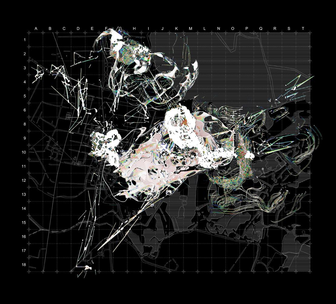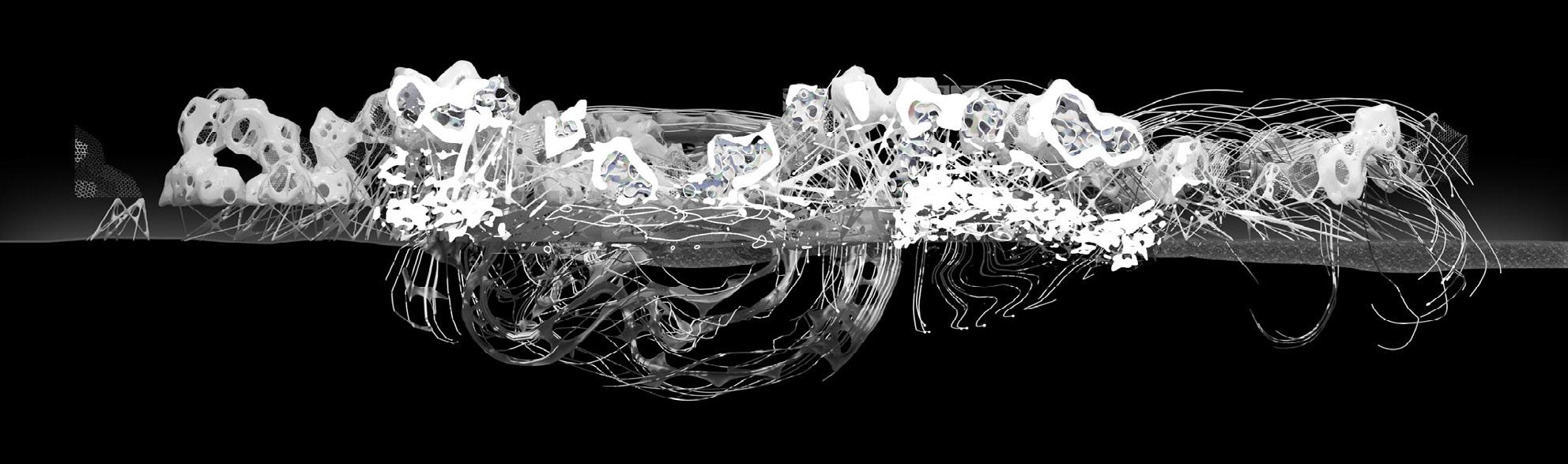 The future city will grow over time by accumulation, through a collect and distribute system. A frame of filtering filaments are proposed to gather existing discarded environmental waste to re-manufacture into architectural materials for distribution.