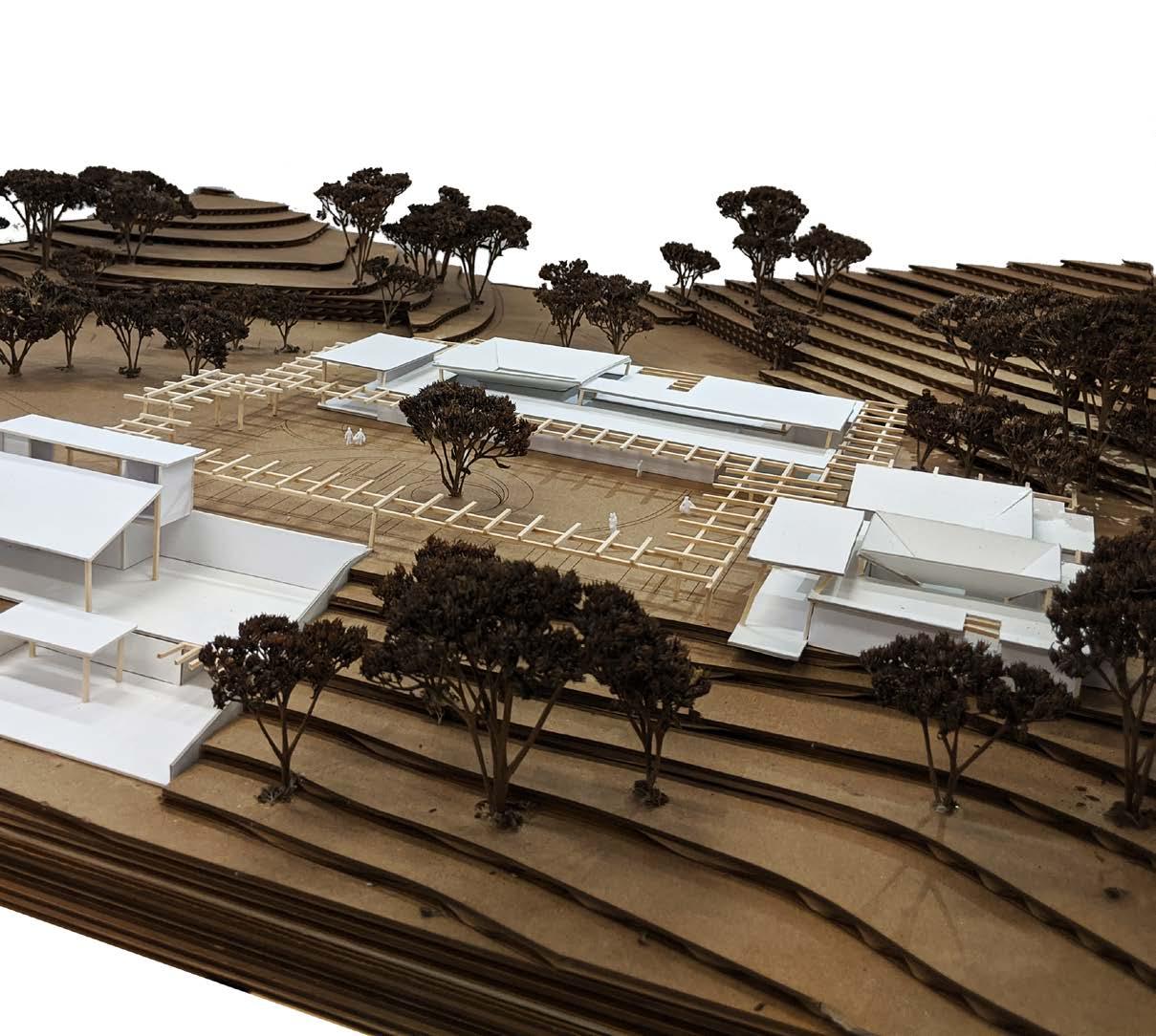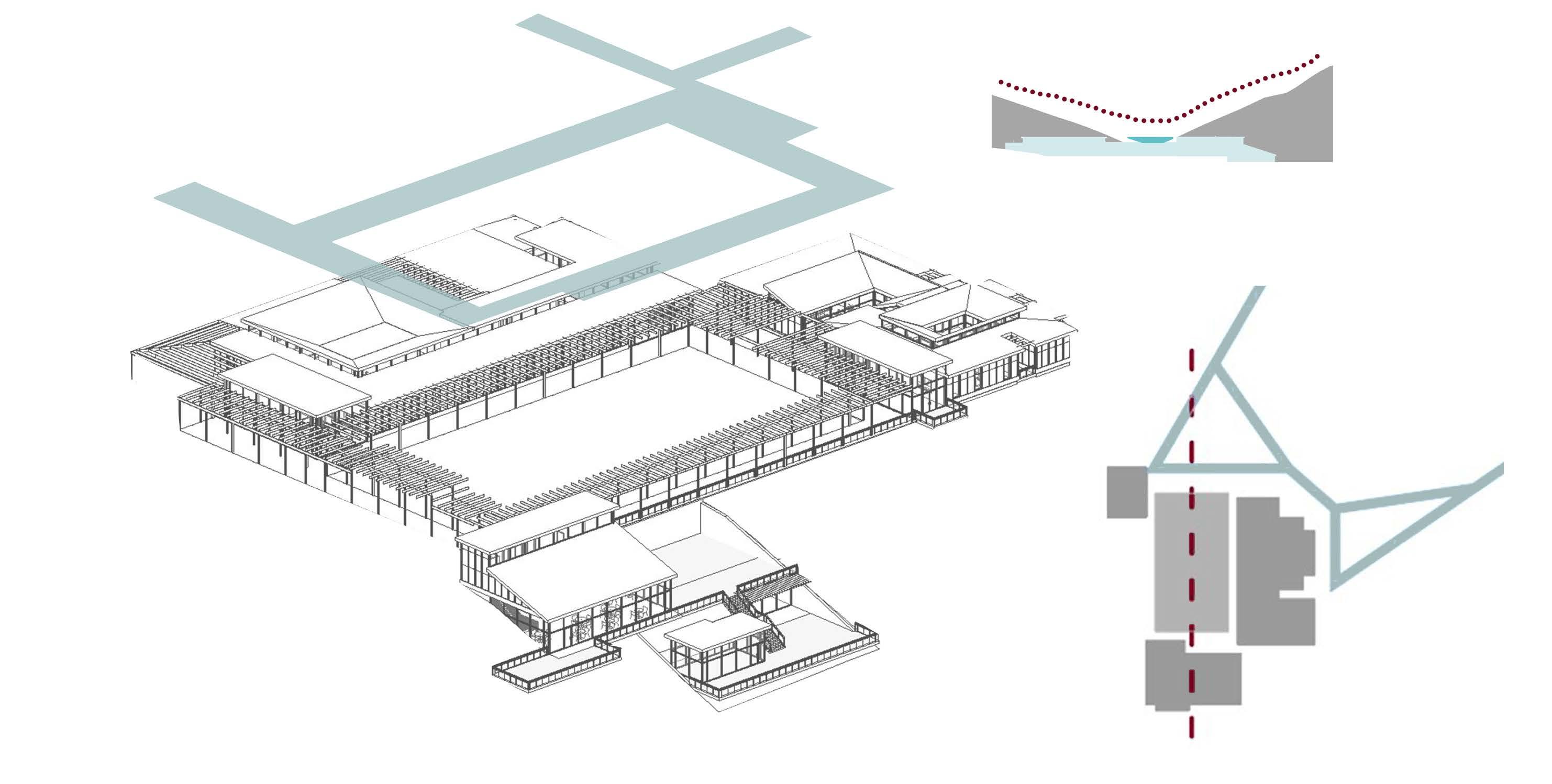 To allow for access to greenspace and light, we staggered the rectilinear geometry of our buildings in both plan and section, opening to courtyards and gardens. We also lifted our roof higher in public areas to allow for larger curtain walls or ribbon windows all throughout the buildings. Our final key design concept was that of giving back to the surrounding community by creating a community center and large landscape space.