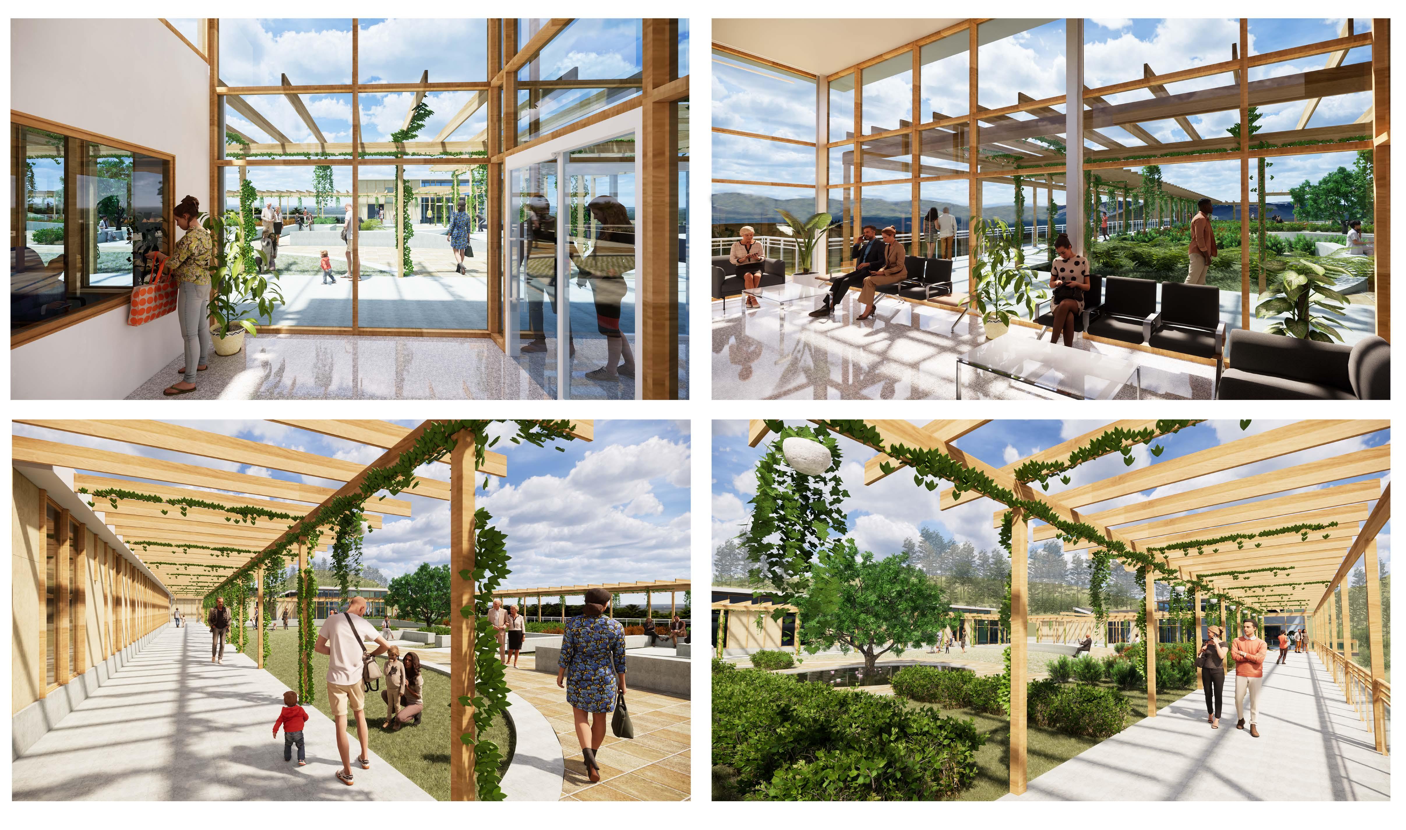 Our research-based approach to a healthcare campus focused on familiarity, wayfinding, access to greenspace and light, and participatory community design. Familiarity came through in our form and materiality, producing a single-story, aesthetically pleasing façade experienced all throughout the campus.