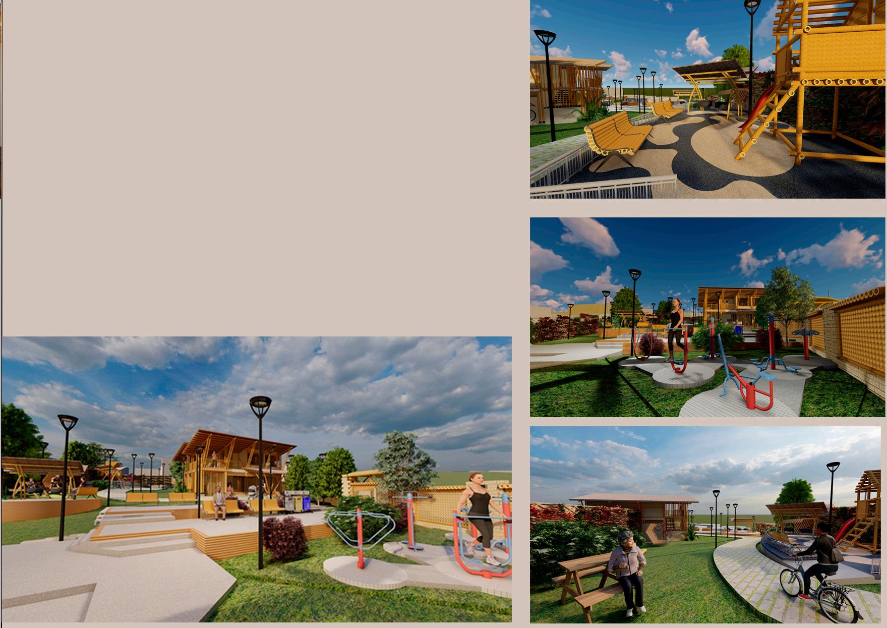 Se diseña El parque de bambú con el propósito principal es promover el mejoramiento integral de los barrios, en este caso se propone un ludoteca, parque infantil, máquina de ejercicios y un jardín.