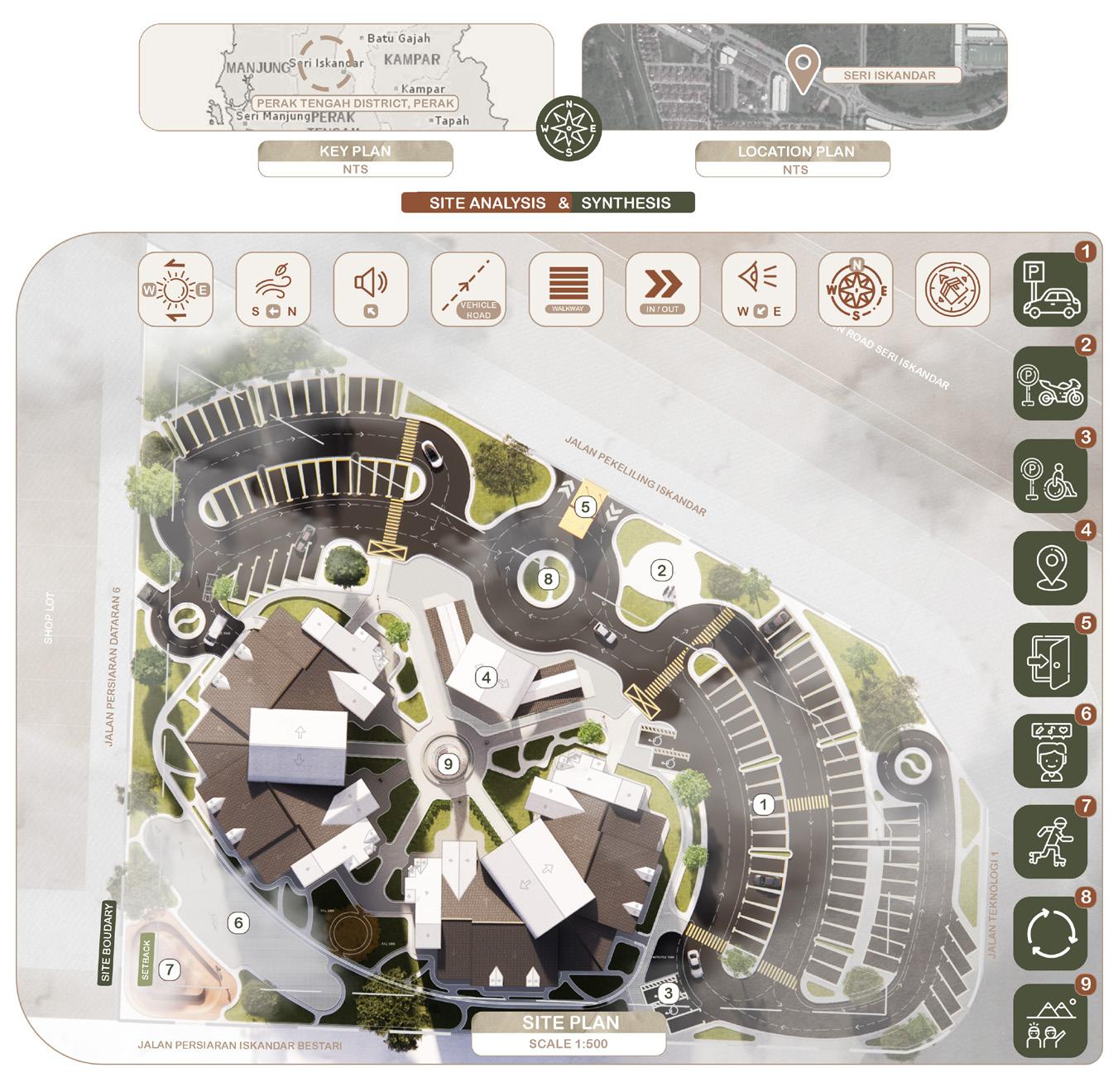 To formulate a design brief of AFC Youth Training Centre and AFC Academic Centre of Excellence ie. Educational Facilities, accommodation, fitness and training centre and sports business hub etc. To support new landmark of AFC+FIFA Mini Stadium and becoming specific sport facility (any sports related to FIFA Football - football-based game/sport). To create a public place in putrajaya with a local Tropical Regionalism approaches and characteristics.