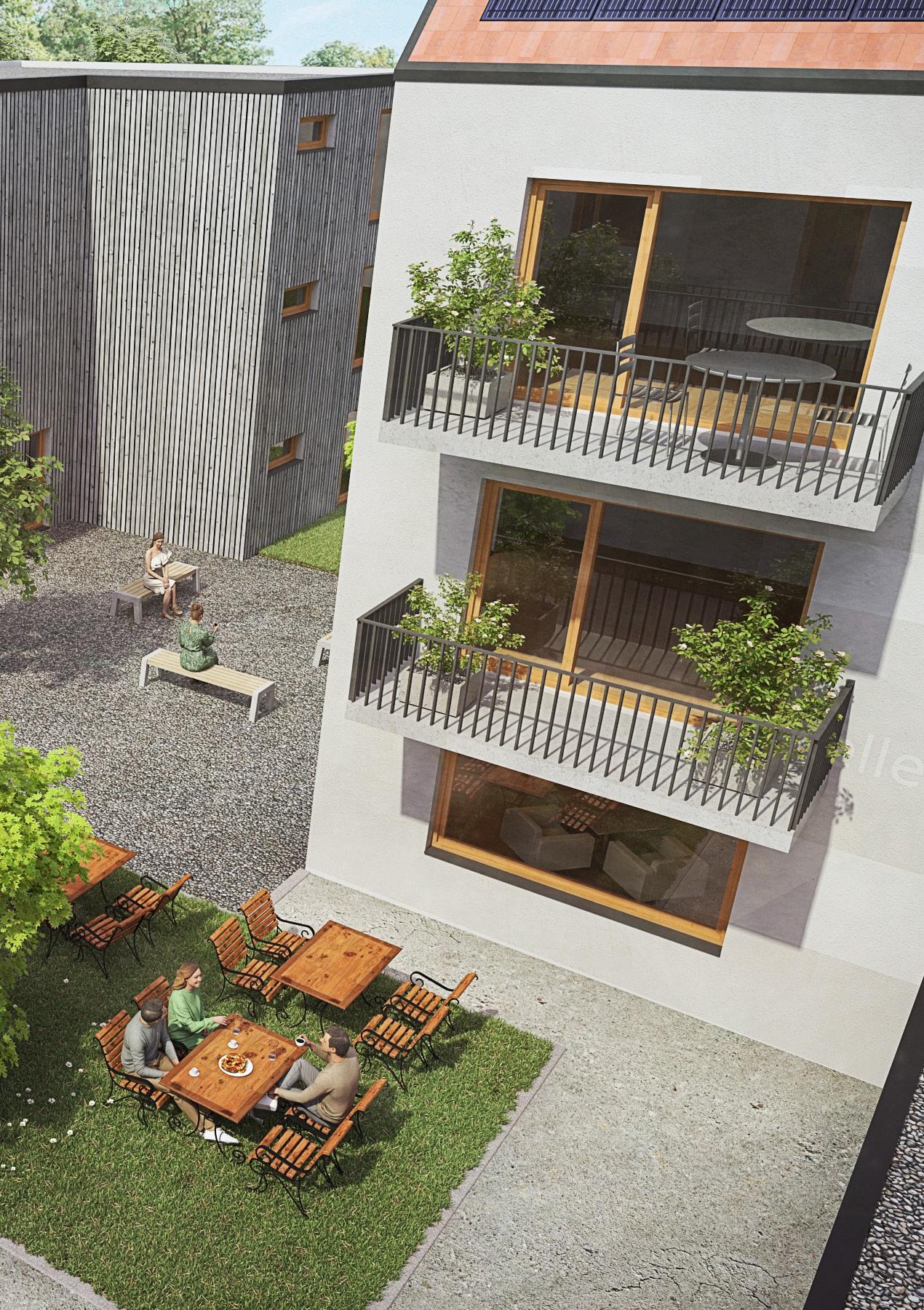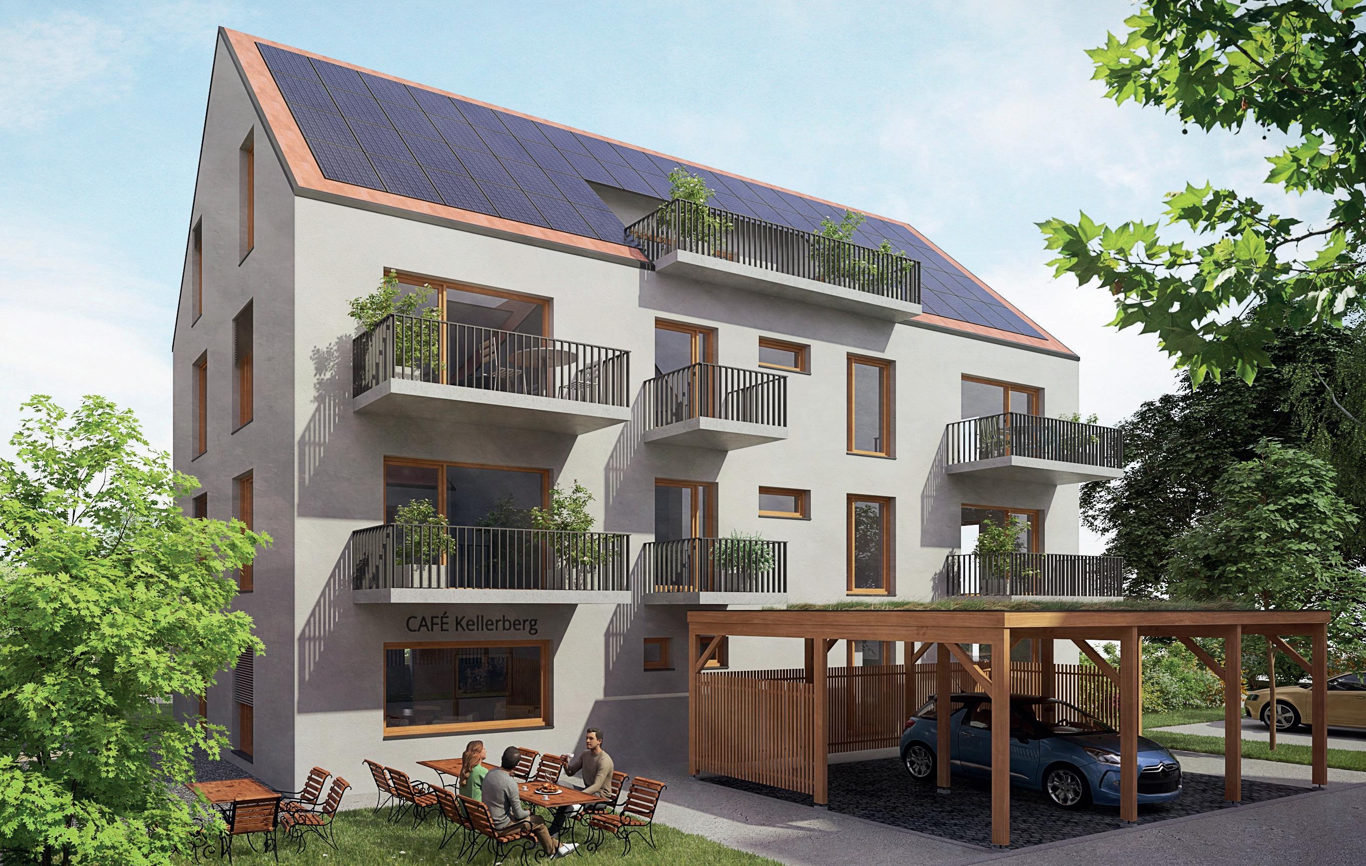 Eine lockere Bebauung mit hochwertiger Architektur bietet allen Bewohnern ausreichend Platz und angenehme Wohnverhältnisse. Ein sich im Quartier befindliches Café lädt zum Verweilen und zwanglosen Treffen mit Nachbarn ein.Mit einem eigenen regenerativen Nahwärmenetz mit vor Ort produzierter Energie, wird jede Wohnung unabhängig von großen Energieversorgern mit Wärme beliefert. Der zur Parkanlage hin orientierte Nachbarscha sgarten bietet auch Gartenliebhabern aus den oberen Stockwerken die Möglichkeit sich gärtnerisch verwirklichen zu können.