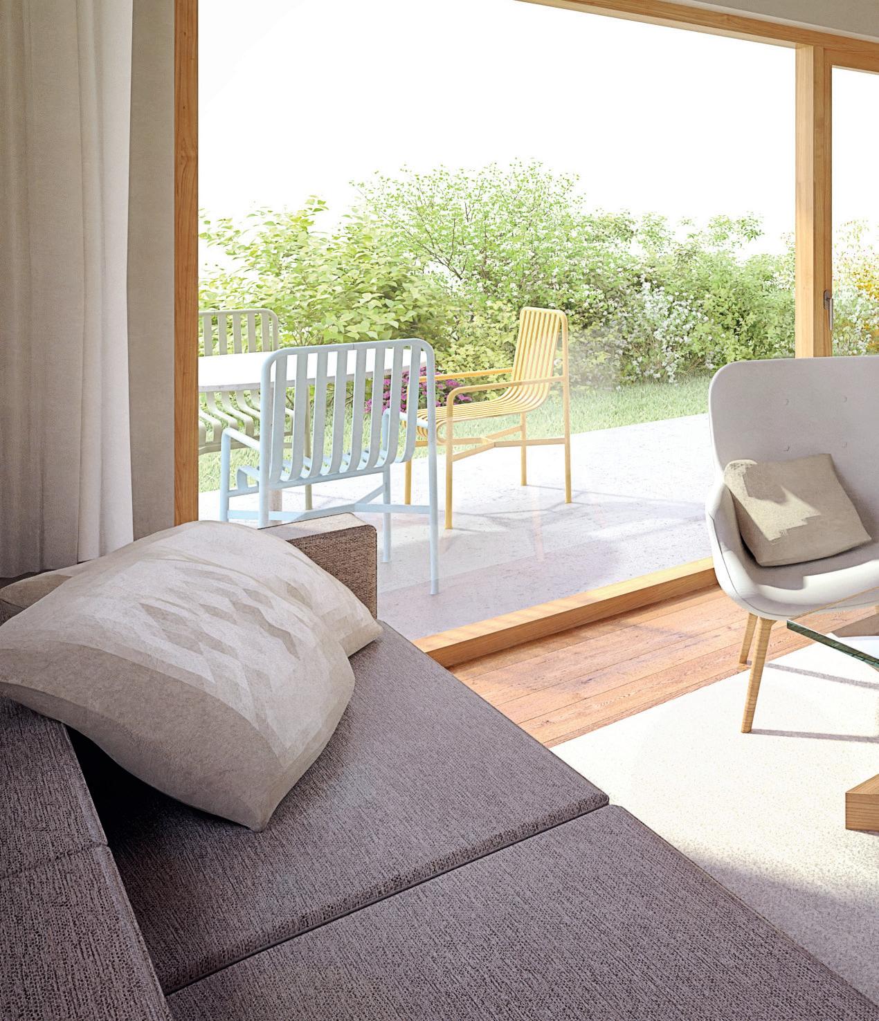 Alle Wohnungen verfügen über einen Echtholz-Parke boden und meist bodentiefe Holz-Alu Fenster. Das natürliche Element Holz spielt im Vorhaben eine wichtige Rolle und trägt entscheidend zur Gemütlichkeit bei. Mit einer zentralen Fußbodenheizung in allen Räumen können Sie entspannt die kälteren Wintermonate genießen. Über die Steuerung der Bescha ungsanlage können Sie individuell die Sonneneinstrahlung in den verschiedenen Räumlichkeiten regeln.