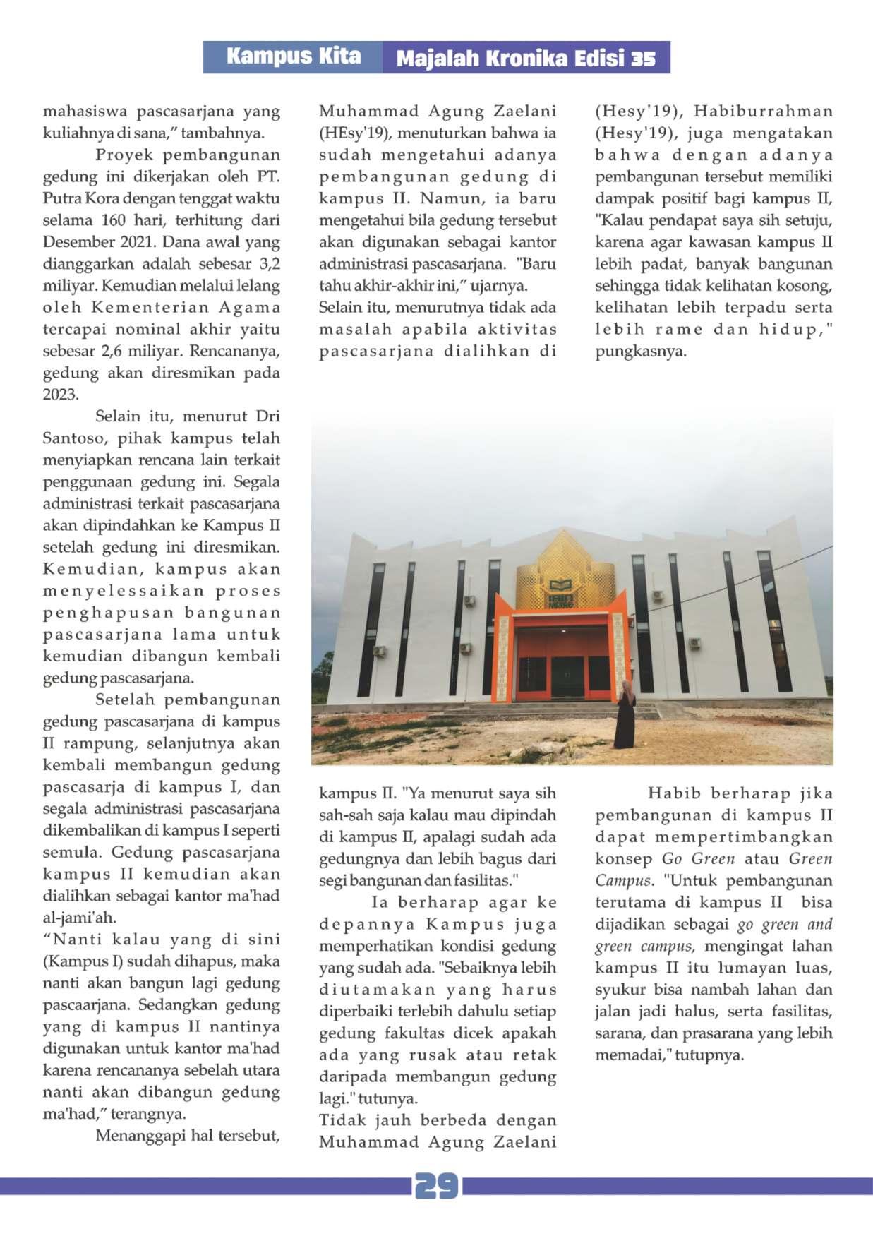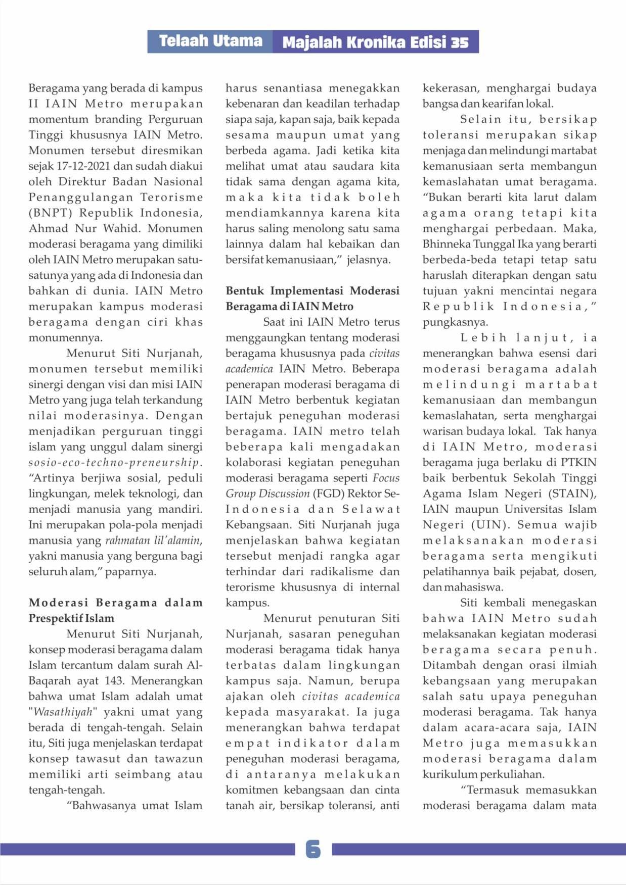 Dalam edisi kali ini memuat informasi mengenai kampanye moderasi beragama di sebuah kampus berlabel Perguruan Tinggi Keagamaan Islam (PTKIN). Bagaimana gaung moderasi lebih lantang suaranya dibandingkan mengurusi persoalan fasilitas perkuliahan. Terlihat dengan dibangungnnya sebuah monumen moderasi beragama yang saat ini menjadi yang pertama dan satu-satunya di Indonesia.