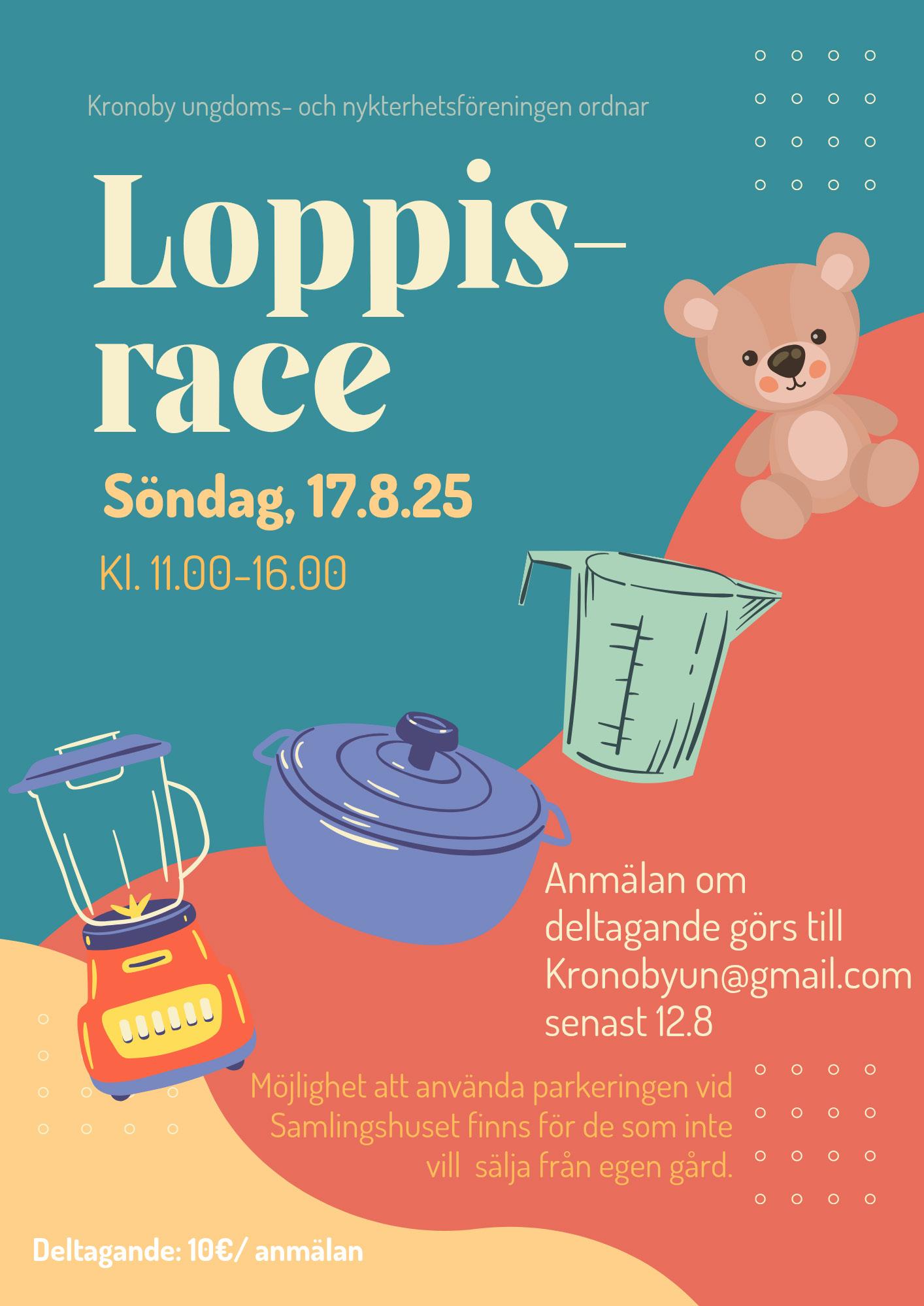 19.00-21.30 Byarace Ett lekfullt race mellan de olika byarna i Kronoby, där de tävlande utför humoristiska tävlingsuppgifter eller svarar på frågor vid de olika racestoppen. Tävlan sker enskilt och den med flest insamlade poäng vinner.