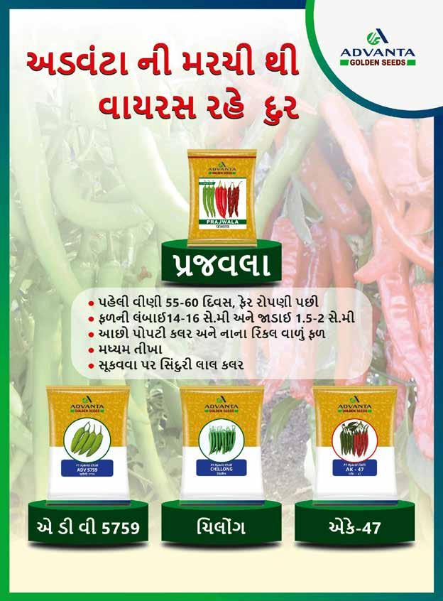 વનલેશભવાઈ દે્જીભવાઈ સવાકરીયવા મોં. ૯૯૭૯૪ ૪૩૦૯૫ મુ. ્વાછરવા તવાલુકવા. ગોંરલ , જી. રવાજકોટ મને વનવધ ૫૦૫ જાતમવાંથી ઉતપવાદન સવાર મળ, અને ખવાસ કરીને ભવા્ ્ધવાર સવારવા મળવા કવારણ ક મરરવાની સવાઈઝ અને કલર ગમી જાઈ એ્વા છ, લીલવા તેમજ લવાલ બંને મવાટ અનુકળ છ, છલ્ સુધી લીલી રહે છ. ્વાયરસ સવામે પ્રષતકવારક જાત છ. ફોર્ર ઓછ અને રુસીયવા સવામે પ્રષતકવારક છ દીપકભવાઈ મનસુખભવાઇ બવારીયવા મોં. ૬૩૫૫૯ ૦૦૮૭૦ ગવામ: ઢબુરવા તવાલુકવા: લીમખેરવા જી. દવાહોદ મેં વનવધ સીડસનવા મરરવા વનવધ ૫૦૫નું ્વા્ેતર કયુ હતું જમવા ફલવા્રીંગ ્હેલું લવાગે છ અને એક સવાથે લવાગે, રોગ સવામે પ્રષતકવારક, ફળમવા બગવાર નહહ્ત, તીખવાશ સવારી, બજારભવા્ સવારવા મળે છ, ્વા્્વા જ્ી જાત છ. રસસકભવાઈ રૂરવાભવાઈ ભંરરી મોં. ૯૯૨૫૮ ૩૧૮૪૬ ગવામ: ગુંદવાસરી તવાલુકવા: જામ કરોરણવા જી. રવાજકોટ મેં વનવધ સીડસનવા મરરવા વનવધ ૫૦૫નું ્વા્ેતર કયુ હતું, ્વાયરસનું પ્રમવાણ ખુબ ઓછ, સુકવારવા સવામે પ્રષતકવારક, ્ધવાર ઉતપવાદન અને સવારવા બજારભવા્ મળવા ્લ્ભ ભવાઈ પીપળીયવા ગવામ કોલીથર, તવાલુકવા ગોંરલ, વજલ્ો રવાજકોટ મોં ૯૬૨૪૩૯૬૨૫૭ મેં વનવધ સીડસનવા મરરવા વનવધ ૫૦૫નું ્વા્ેતર કયુ તું, તેમવા ફલ ્ેલવા આવયવા, એકી સવાથે ફલવા્રીંગ આવયું, અને ખવાસ કરી ને ્વાયરસ સવામે પ્રષતકવારક હો્વાથી ઉતપવાદન ્ધવાર મળ અને મરરવાંની ્ક્ોવલટી સવારી હો્વાથી ્ધવાર બજારભવા્ મળો અરવ્દભવાઈ બોઘરવા મોં ૯૪૨૬૫૪૨૩૯૩ ગવામ: મેટોરવા, તવા. લોધીકવા જી. રવાજકોટ મેં વનવધ સીડસનવા મરરવા વનવધ ૫૦૫નું ્વા્ેતર કયુ તું, જમવા મરરવાંનું ઉતપવાદન સવાર મળ, અને લીલવા તેમજ લવાલ બંને મરરવા ્ર્વા મવાટ અનુકળ છ અને બજારભવા્ ખુબ સવારવા મળવા કલર ગમી જાઈ એ્વા બગવાર નહહ્ત ્વાયરસ ઓછો બજારભવા્ સવારવા બજારભવા્ સવારો મરરી બીજ પસંદગી વ્શેરવાંક -૨૦૨૩ ્પલોટ -૫૩૧/બી, રોર-જી, વકશવાન ગેઇટ, લોવધકવા જી.આઈ.રી. સી. મેટોરવા - ૩૬૦૦૨૧ મો. 94269 42254 કૃષિવિજ્ઞાન | િર્ષ- ૪૯ | અંક-૦૨ | મઞાર-૨૦૨૩ 7 કૃષિ ષિજ્ઞાન
