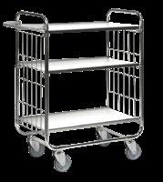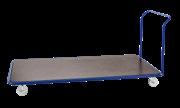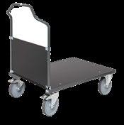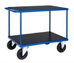 Modulopbygget serie af lagervogne. 3 forskellige grundstørrelser. Kraftig stålrørskonstruktion. Kraftig 19 mm støbekrydsfiner ladplade. 2 faste og 2 drejelige massivgummihjul. Pulverlakeret overfladebehandling i rød. Bæreevne 201 serien: 350 kg, 202 og 203 serien: 400 kg.