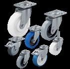 Drejelige og faste hjul, sværlastudførelse Sværlasthjul med fuldelastisk massivgummibane “Blickle EasyRoll” i oppresset rustfri stålpladegaffel med kromnikkelstål-legering.
