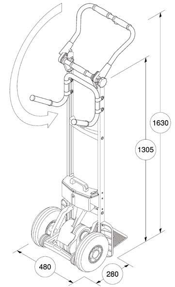 Er bøjlen tilbageklappet, så har de en normal sækkevogn. På trapper er bøjlen klappet op, så den bliver ergonomisk som ERGO, samt ideel for høje laste.