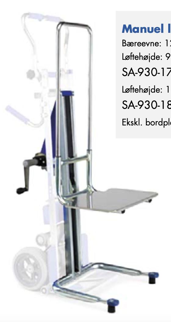 Giver mulighed for en oprejst stilling og en god kontrol over vognen ved trappekørsel, maks. lasthøjde 1500 mm.