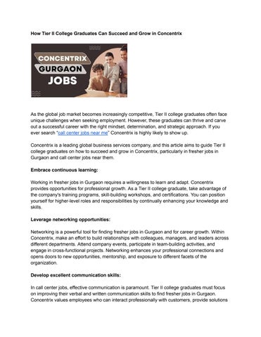 In today's competitive job market, staying updated with the latest job opportunities is crucial for job seekers, especially those looking for fresher jobs in Gurgaon Concentrix, a leading global business services company, offers numerous career opportunities across various locations, including Concentrix Bangalore and Gurgaon