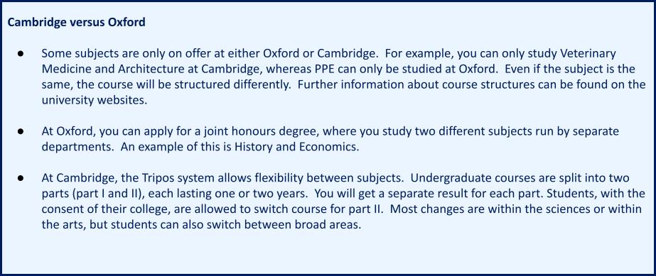● When applying to Oxford, you can put a preference college, but you will most likely be interviewed by a number of colleges over a couple of days in December