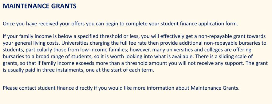 Please be aware that the completion of any student finance documentation will need to be completed by yourself and your parent/carer.