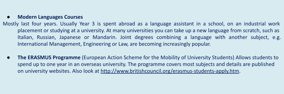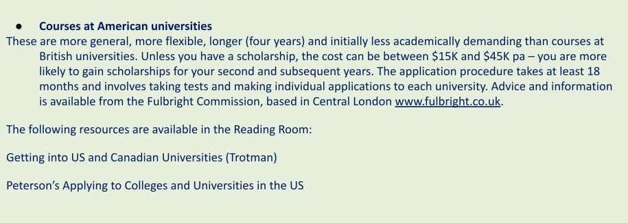 You can also apply to universities abroad, for example in Ireland, France, Holland, Australia or the USA, independently of, and in addition to, any application through UCAS. Make Mrs Curling aware if this applies to you.