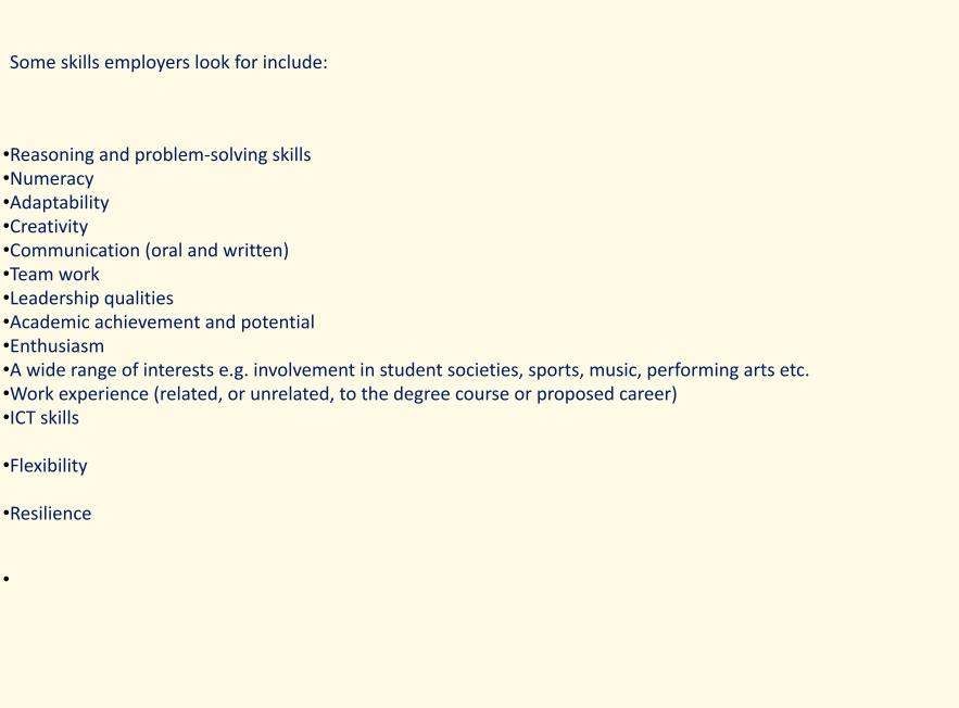 Employers expect their graduate trainees to have gained a number of personal transferable skills during their education In some cases, these skills are considered to be as important as the degree itself
