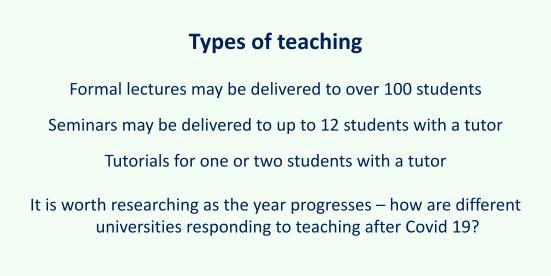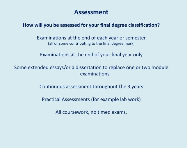 Teaching and examination methods at university are very different from school and so it is worth looking at how you will be taught and assessed to see if it is the right course for you.