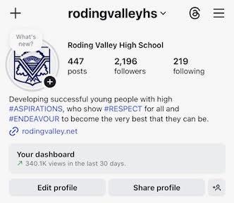 For our parents and carers who are new to our school, we would love you to follow the Roding Valley High school account if you are on Instagram. Here you will find a celebration of all things Roding Valley. The account includes a selection of Highlights for you to engage with and discuss at home.