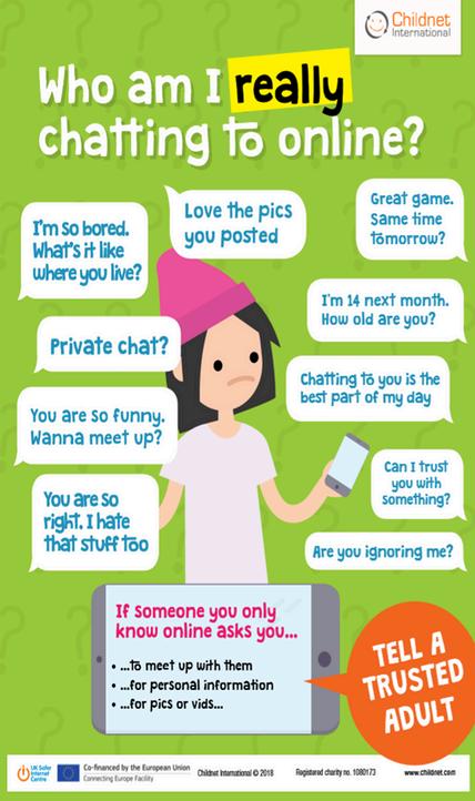 Chat about online safety little and often: Young people are likely to want to explore new apps and websites this month, whether that is for learning or for fun Take this opportunity to talk to them about how to stay safe on these new services, and in general Ask if anything ever worries them while they are online Make sure they know that if they ever feel worried, they can get help by talking to you or another adult they trust.