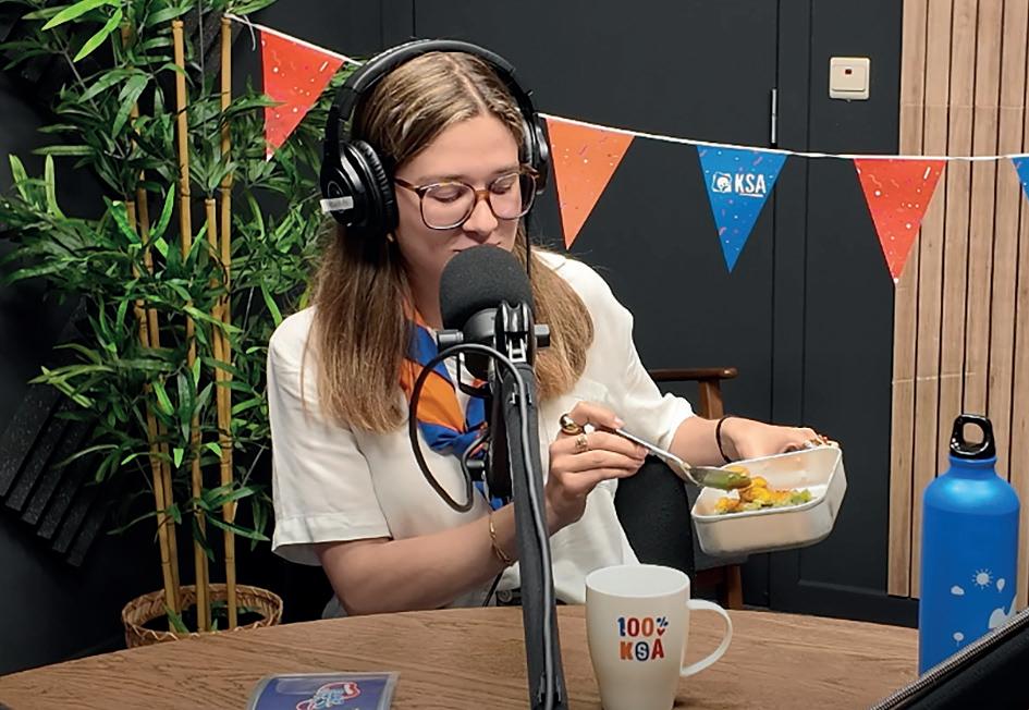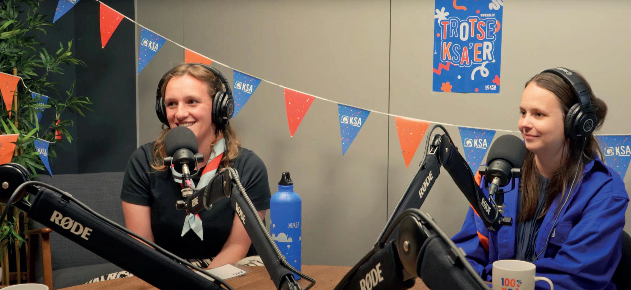 Het idee kwam van Jasper, stagiair bij Communicatie, die voor zijn bachelorproef onderzocht hoe we leden meer met elkaar kunnen laten uitwisselen over het KSA-leven. Zijn conclusie? We hebben nood aan een nieuw kanaal waar verhalen, tips en inside jokes samenkomen. Het resultaat: een pilootaflevering met twee boeiende gasten en Sofie als host.