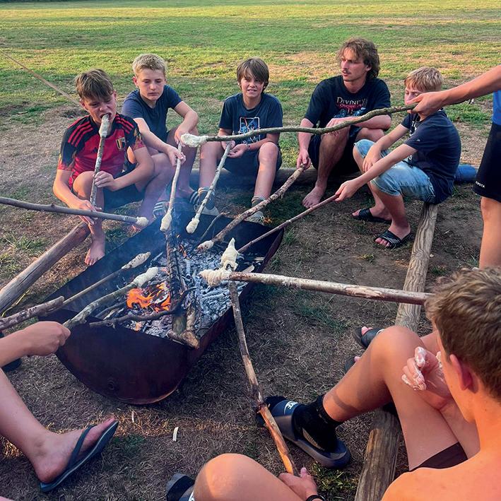 Stuutjes met soep, de ultieme back-tobasics-maaltijd, lachte ons tegemoet bij KSA Wakken. De kookploeg had er duidelijk alles aan gedaan om hart en ziel in die soep te steken, dat was te proeven. Daarna gidste de leiding ons over het terrein, waar back-to-basics niet alleen een thema was, maar echt tot leven kwam.