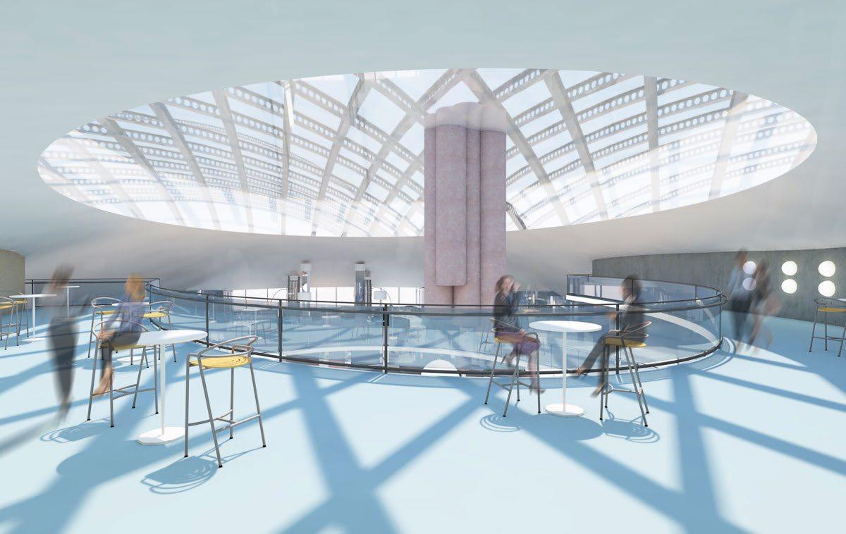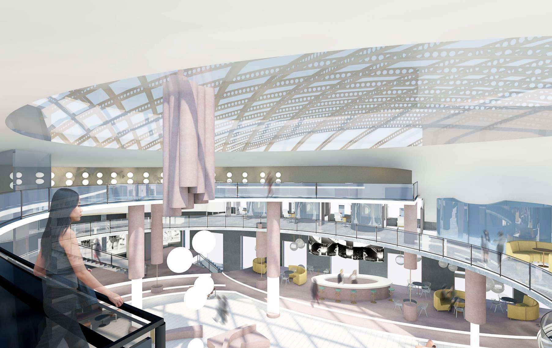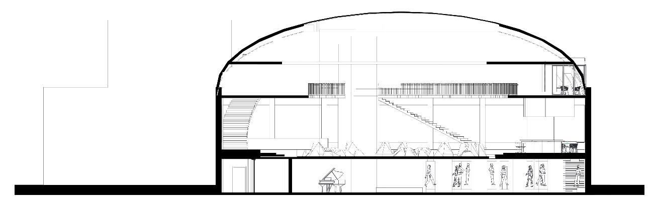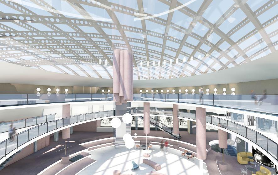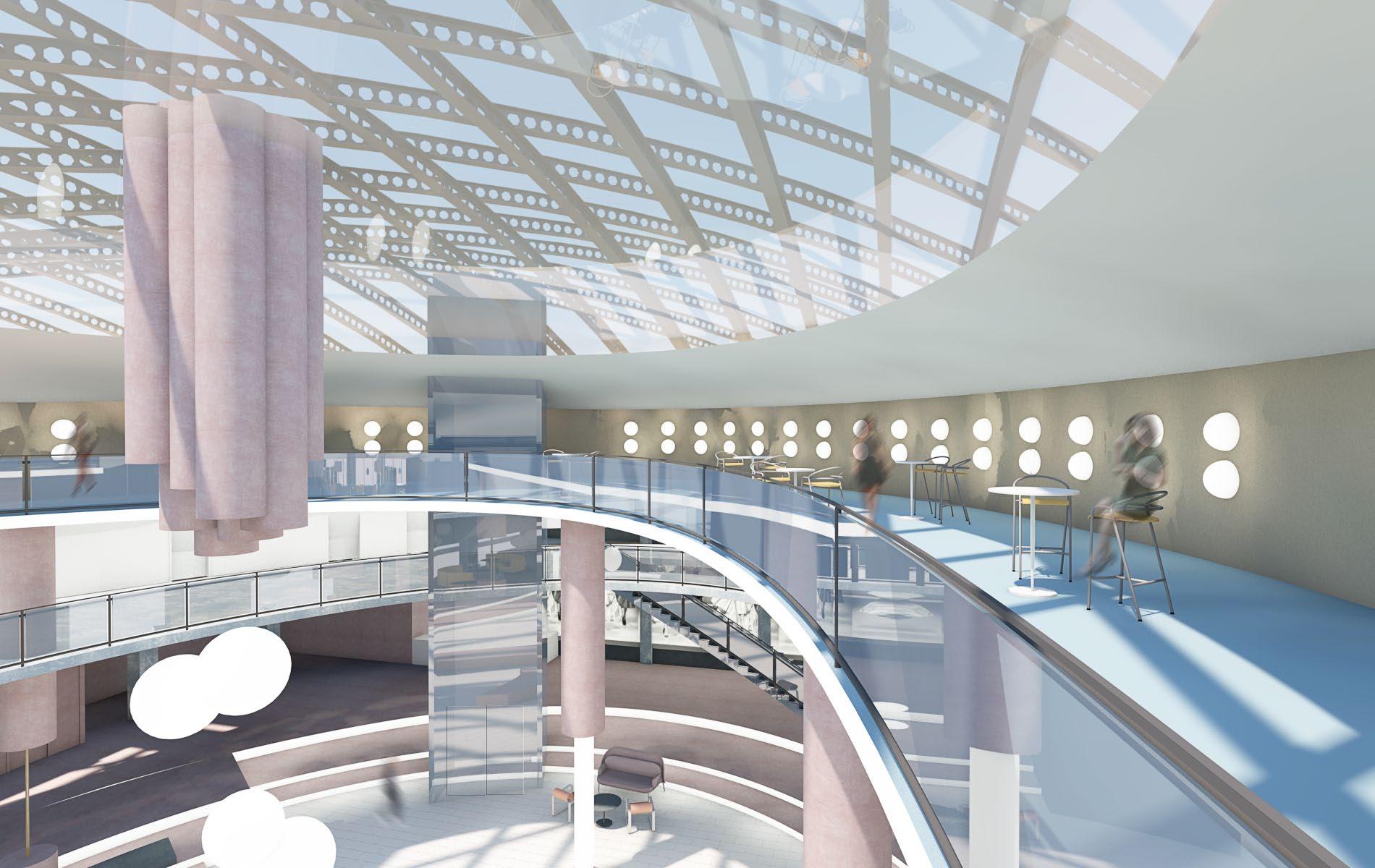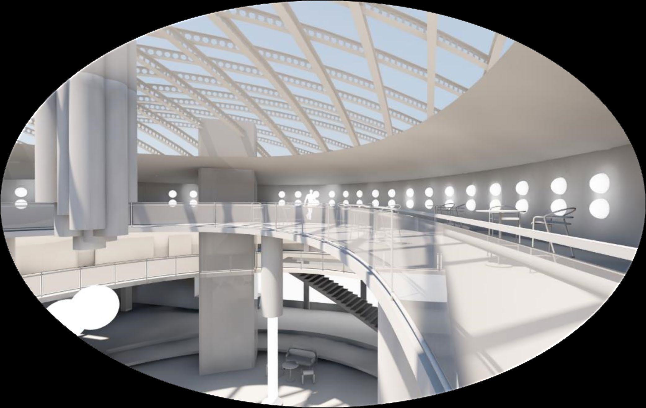 Dome structure gives the focal point and textured shadows in the second and above levels.