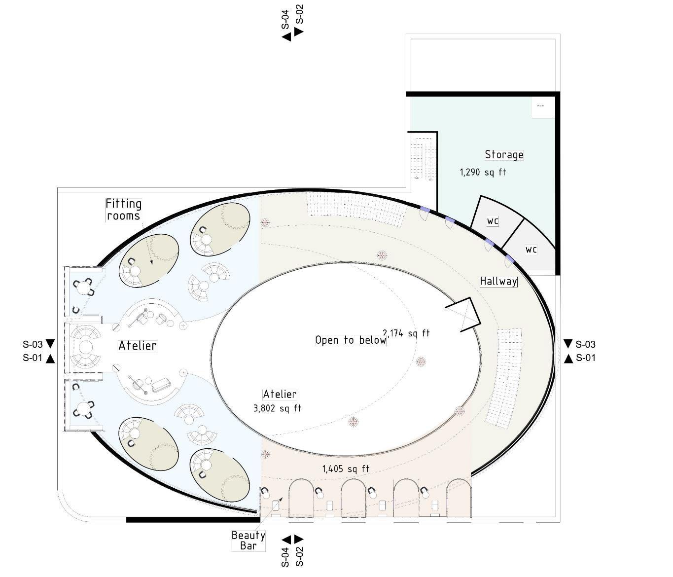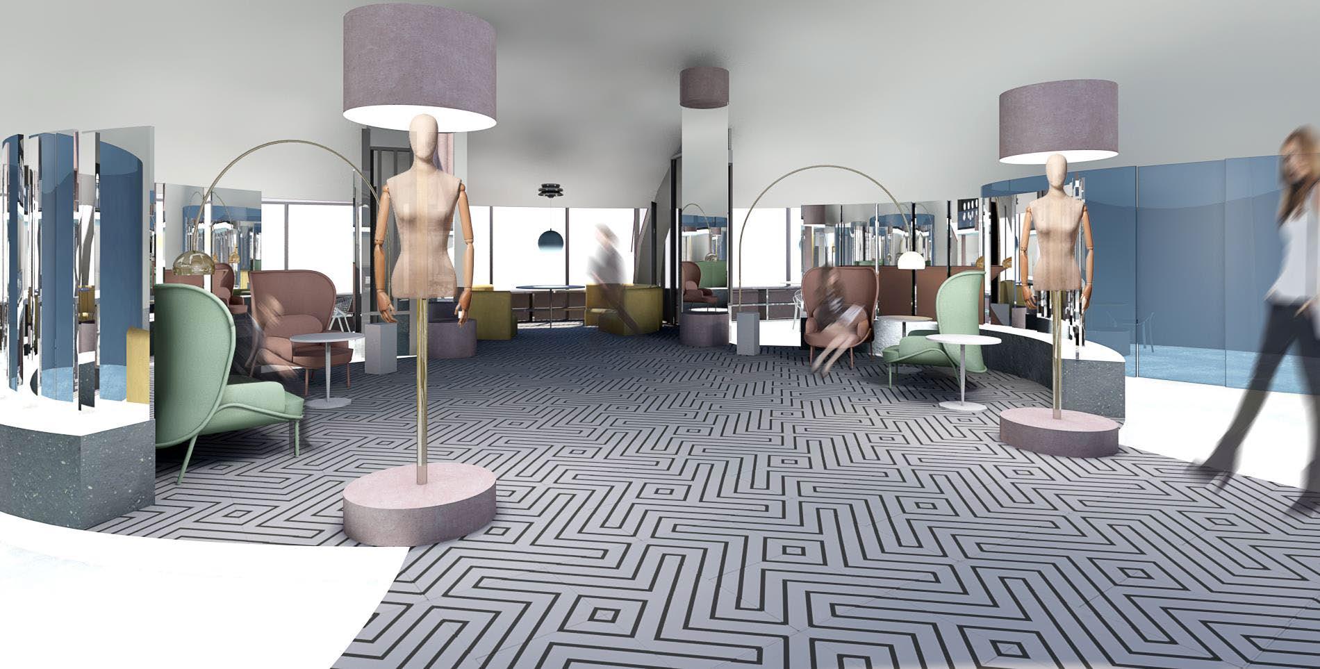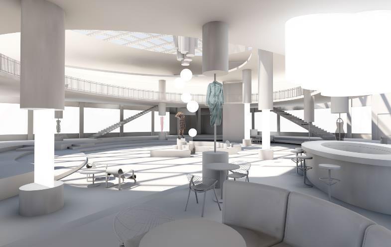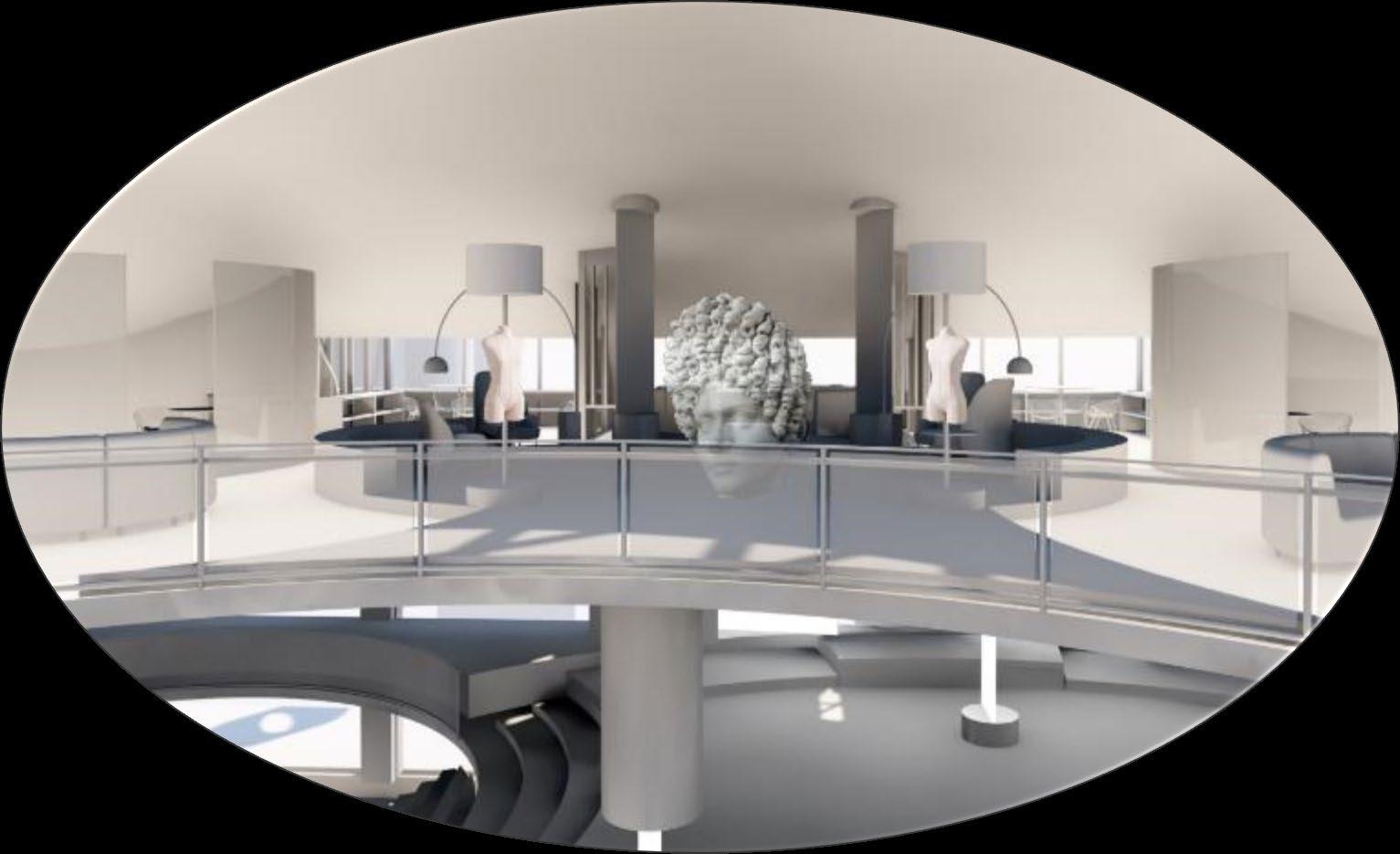 Performance area for brand promotion, fashion shows, movies, events. Exhibits haut couture pieces In the capsules. The first touch with the brand.