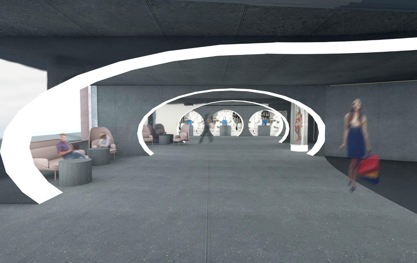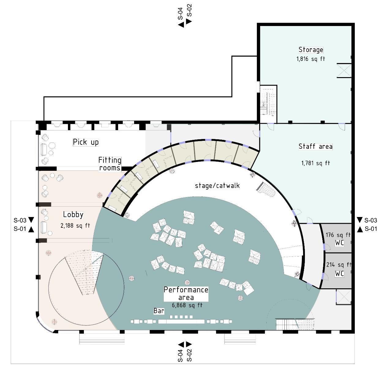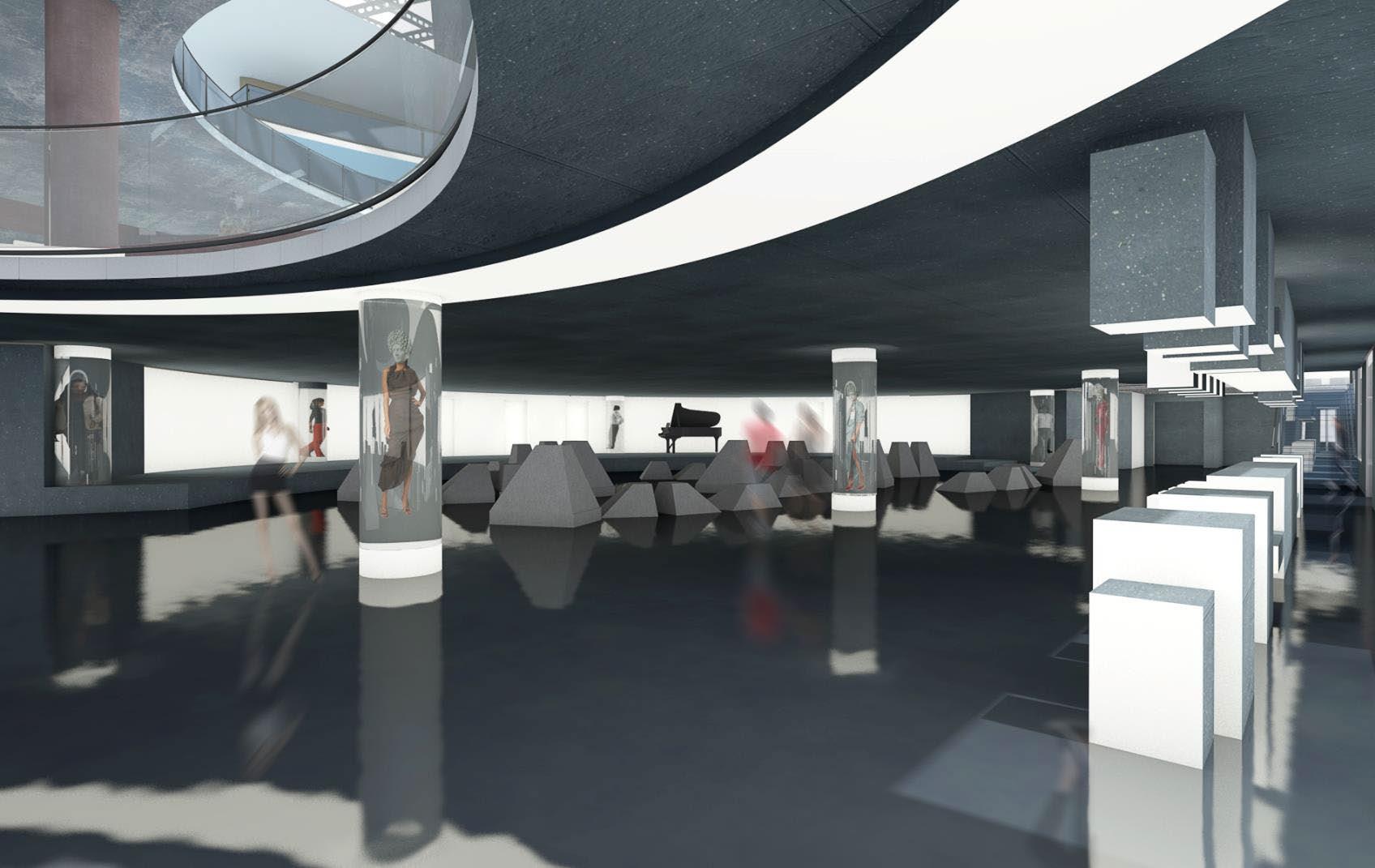 Performance area for brand promotion, fashion shows, movies, events. Exhibits haut couture pieces In the capsules. The first touch with the brand.