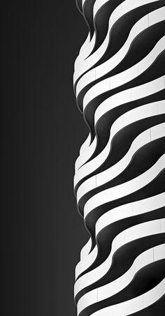 Colors are natural, soft, muted. Green-blue tones like pure water balanced by warm beige and pink. The gradient range is going from the first floor up to the fourth lightening on the upper levels.