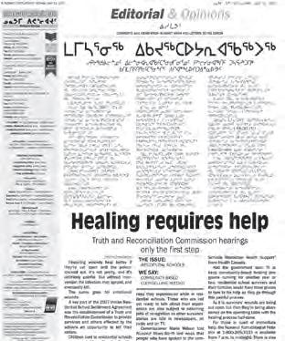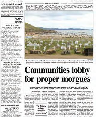 Nunavut News/North is an overall very appealing community newspaper. It has an excellent front page with compelling photos and creative headlines, making for an attractive first impression while also effectively delivering meaningful information. Bilingual delivery of articles and headlines is a challenge and could easily become confusing but is handled nicely in this newspaper with clean layout which makes for an easier read.