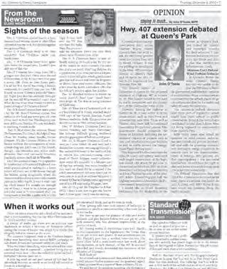 The newspapers in this category represent very different communities in Ontario, but most of them have many traits in common. They are all filled with local news and information; have good solid local advertising support and serve their communities well. A visitor to any of these communities who picked up these newspapers would have no problem in discovering something interesting to do and see, and a local resident would be kept fully-informed about the place where they live, work and shop.