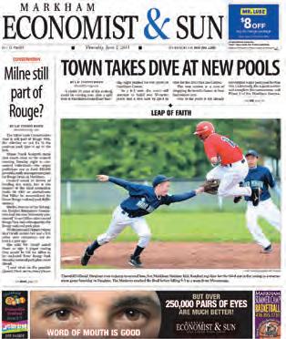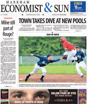 Markham Economist and Sun has clean front pages with good photos and production values. It could use improvements on the sports section and include more letters on the opinion page.