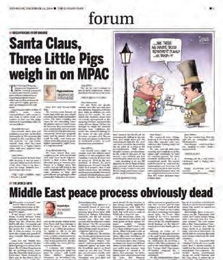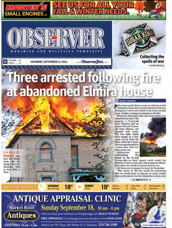 The Elmira-Woolwich Observer is a solid newspaper from front to back. The front page is inviting with good story choices, bold headlines and interesting photos. There is artwork on every page which prevents it from becoming too text heavy, however our judges feel it would be nice to see more colour throughout. Opinion pages are lively with excellent columns and letters to the editor. It’s evident this newspaper has a strong relationship with its readers and the community.