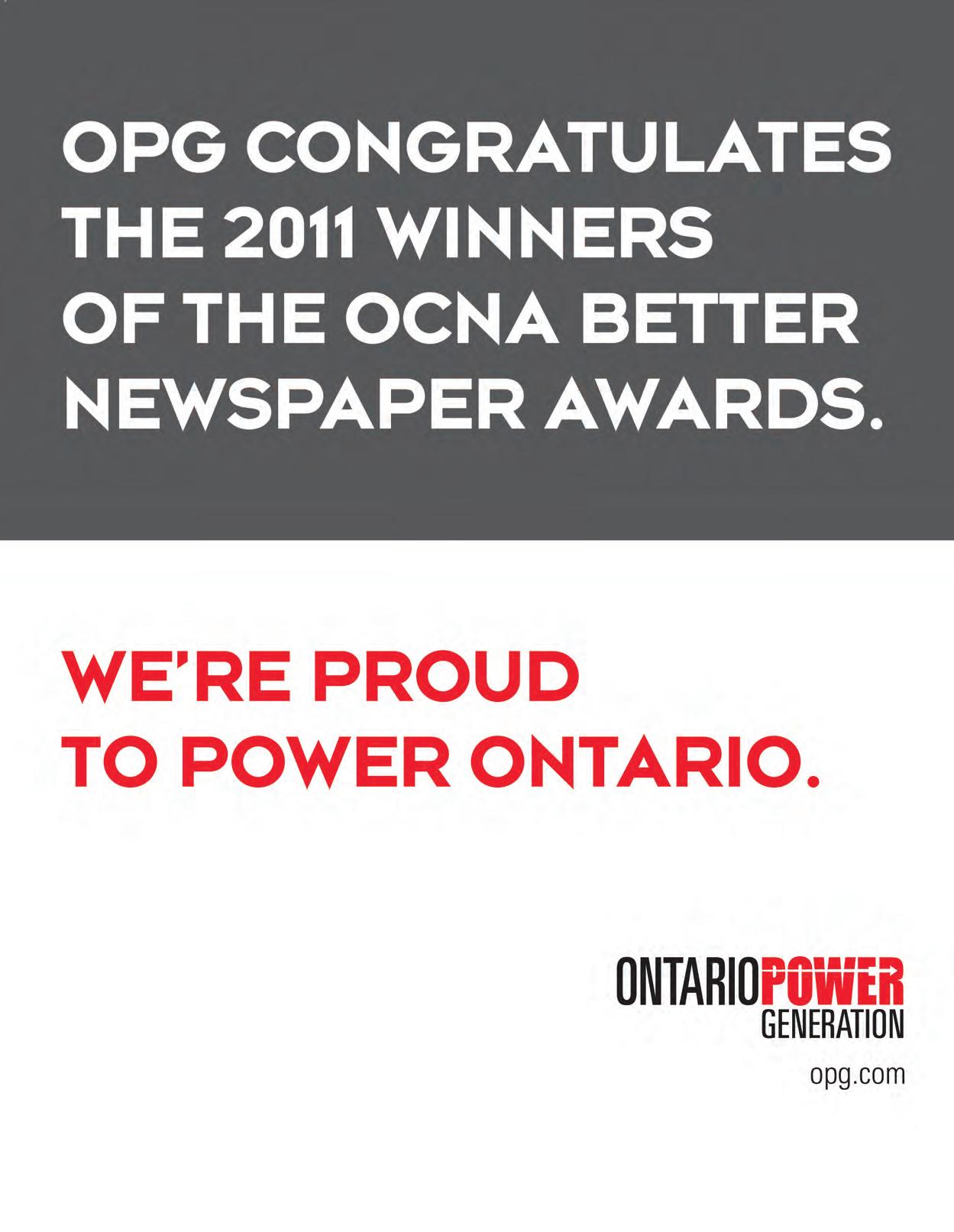 And again, many thanks to members and staff who spent hours looking through numerous articles, photos and ads to enter into this year’s competition. We received an amazing 1,975 entries!! Too soon, it will be time to begin searching again for the 2012 Awards, but until then, bask in the glow that is the greatness of the Ontario weekly community newspapers!