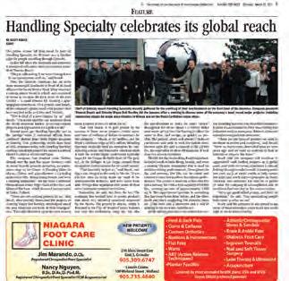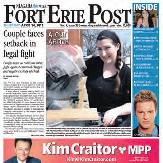 Niagara This Week, Town Crier received high marks from all three judges. It contains great news coverage, strong photography and editorial pages, nice layout and design which are all attributes that put it at the top of the category. The wrap around ads, however, seem to be selling the paper as an advertising flyer rather than a legitimate news product.