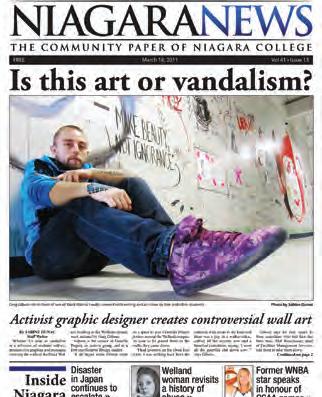 Sabine Dunac’s story “Is this art or vandalism?” tells the story of one student’s quest to put his art posters up around Niagara College’s campus and turns into a discussion of the limits of student artistic expression. This story was helped along by some strong photography by Dunac and Anton Mwewa and an interesting layout, but needed to be proofread a little more carefully.